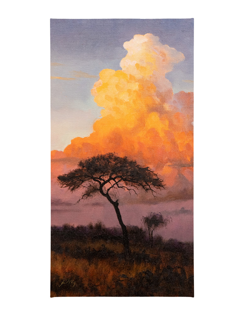 I like this little painting for its bold color and for the memory that it brings. One of my favorite things about growing up in Africa would be the late afternoon thunderstorms. You could watch the sun setting on the thunderheads, lighting them up in golds and orange. You knew that by the time night fell the flashes of lightning and the boom of thunder would echoing in your bedroom. Thunderstorms are always thrilling to me!