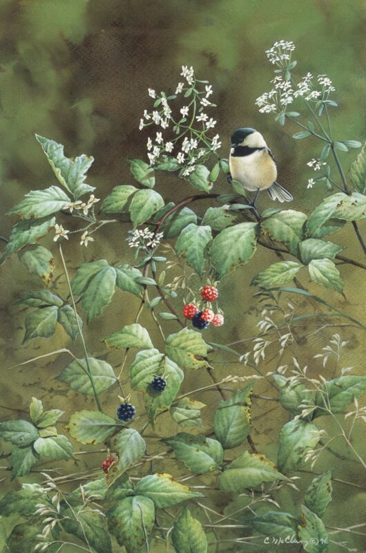 Blossoms & Berries-Black-capped Chickadee