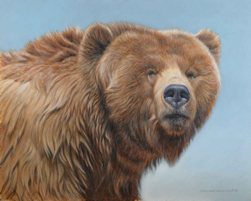 I wanted to depict this large brown bear as more inquisitive than menacing. That's how they typically are. They have fairly poor eyesight and rely heavily on their noses.