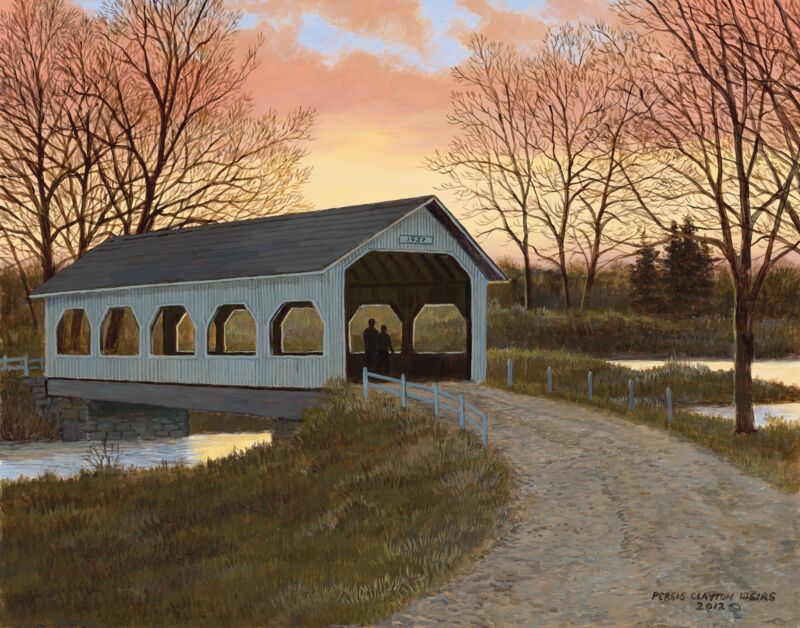 A covered bridge during sunrise is shelter to those that are willing to get up early enough to experience the beautiful morning.