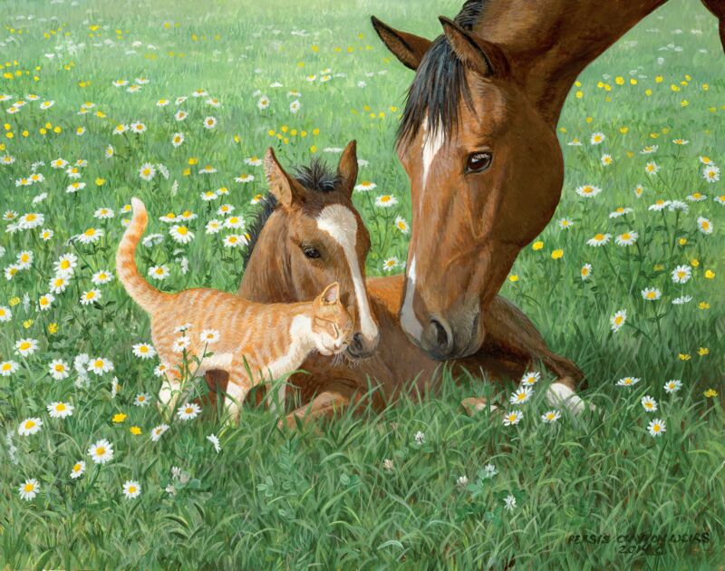 HORSES AND BARN CATS OFTEN FORM AFFECTIONATE FRIENDSHIPS AND ENJOY EACH OTHERS COMPANY.