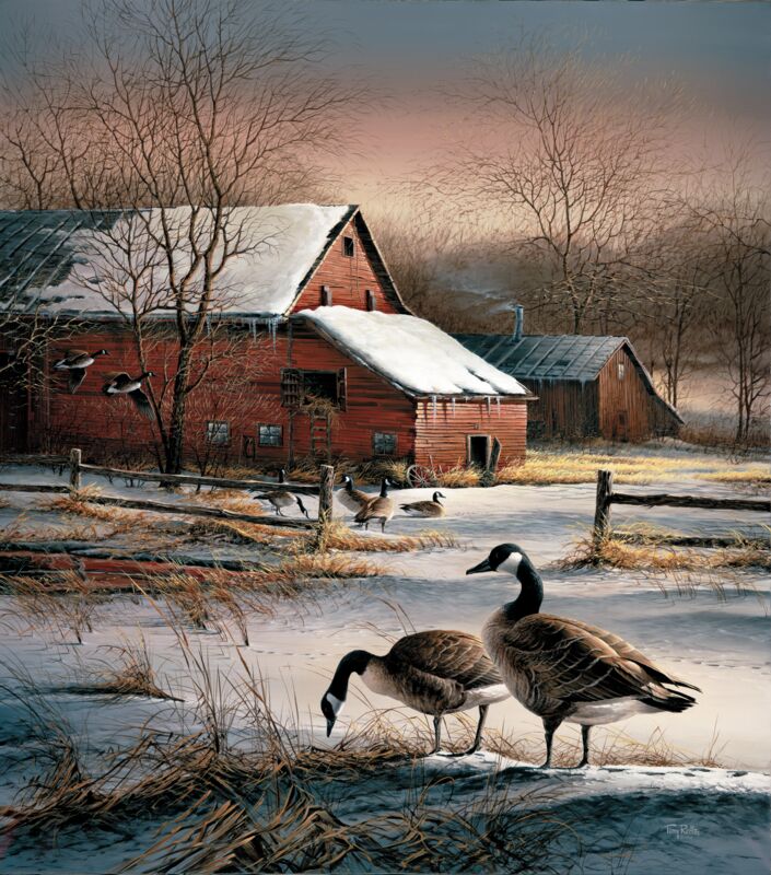 In many parts of the country wildlife management areas offer safe havens for migrating waterfowl. Shown here is one such facility being enjoyed by Canada geese. Hay for nesting is stored in the barn loft. In the spring, melting snow will be contained by a log dam to form a small pasture pond.