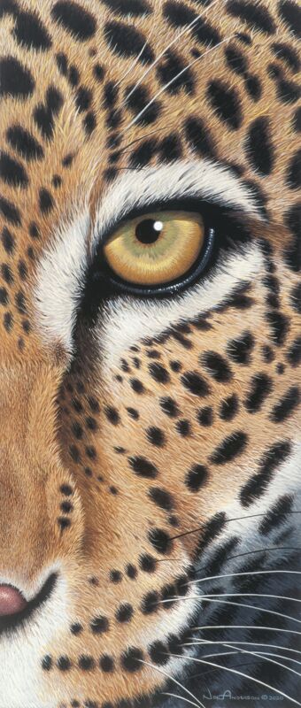 Having previously completed a Tiger in this same format, I was eager to paint another large cat as a companion piece with the same intense stare and contemporary application.