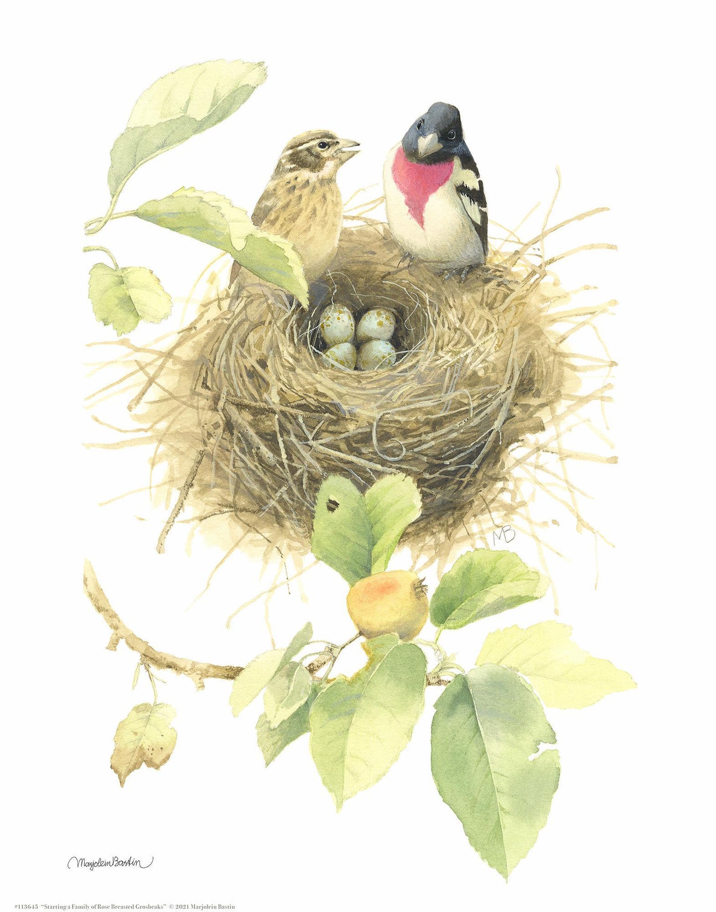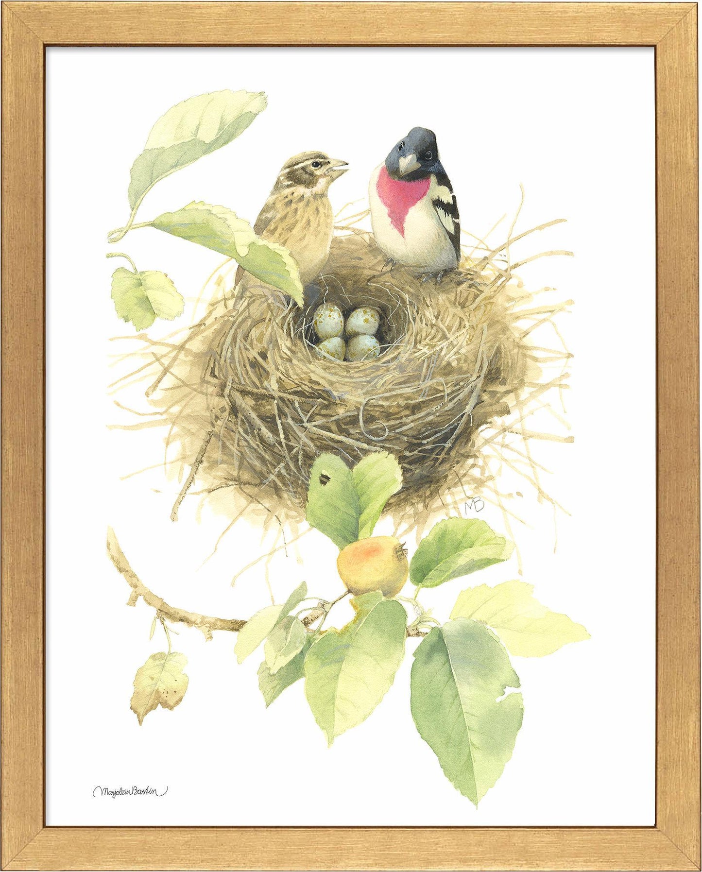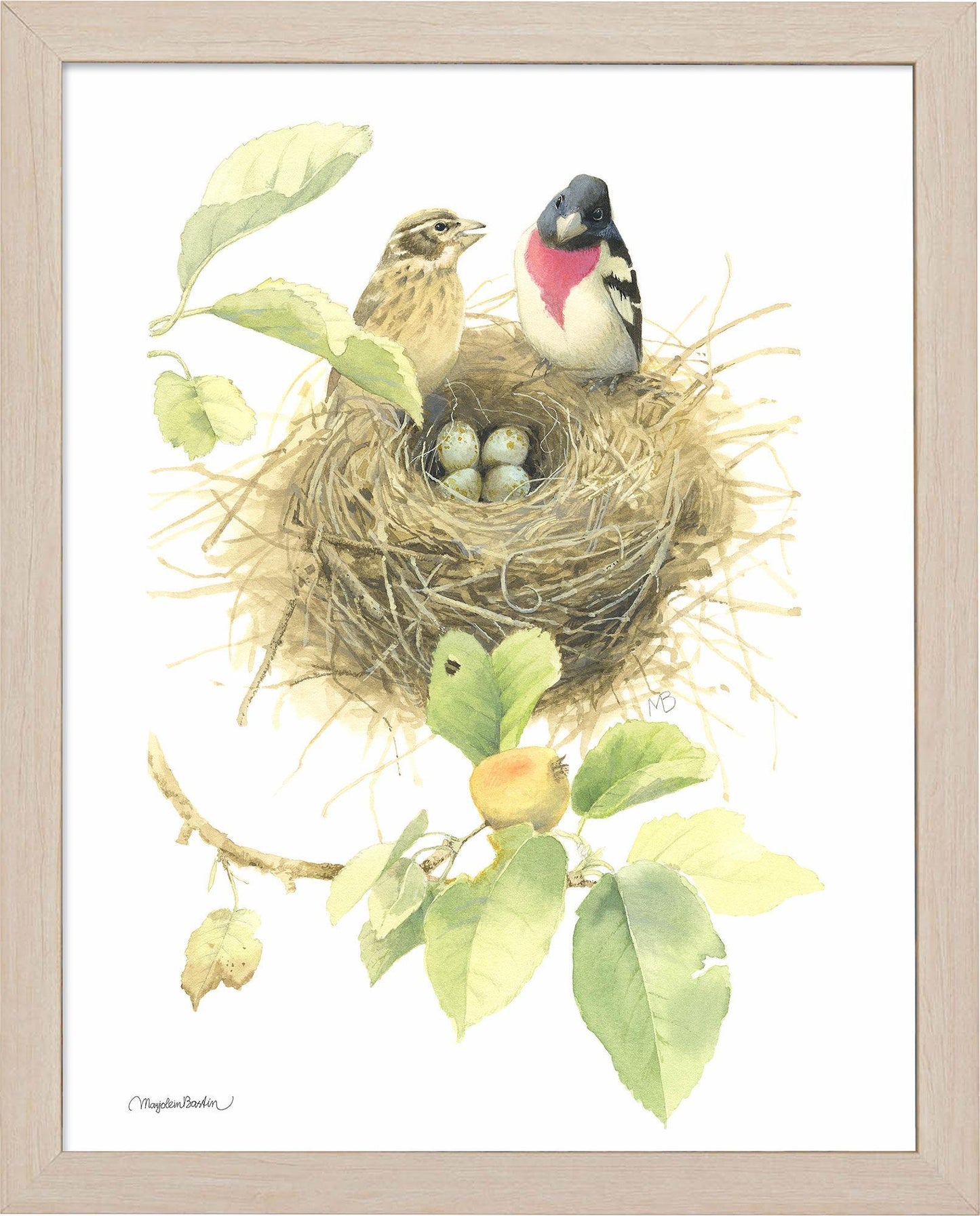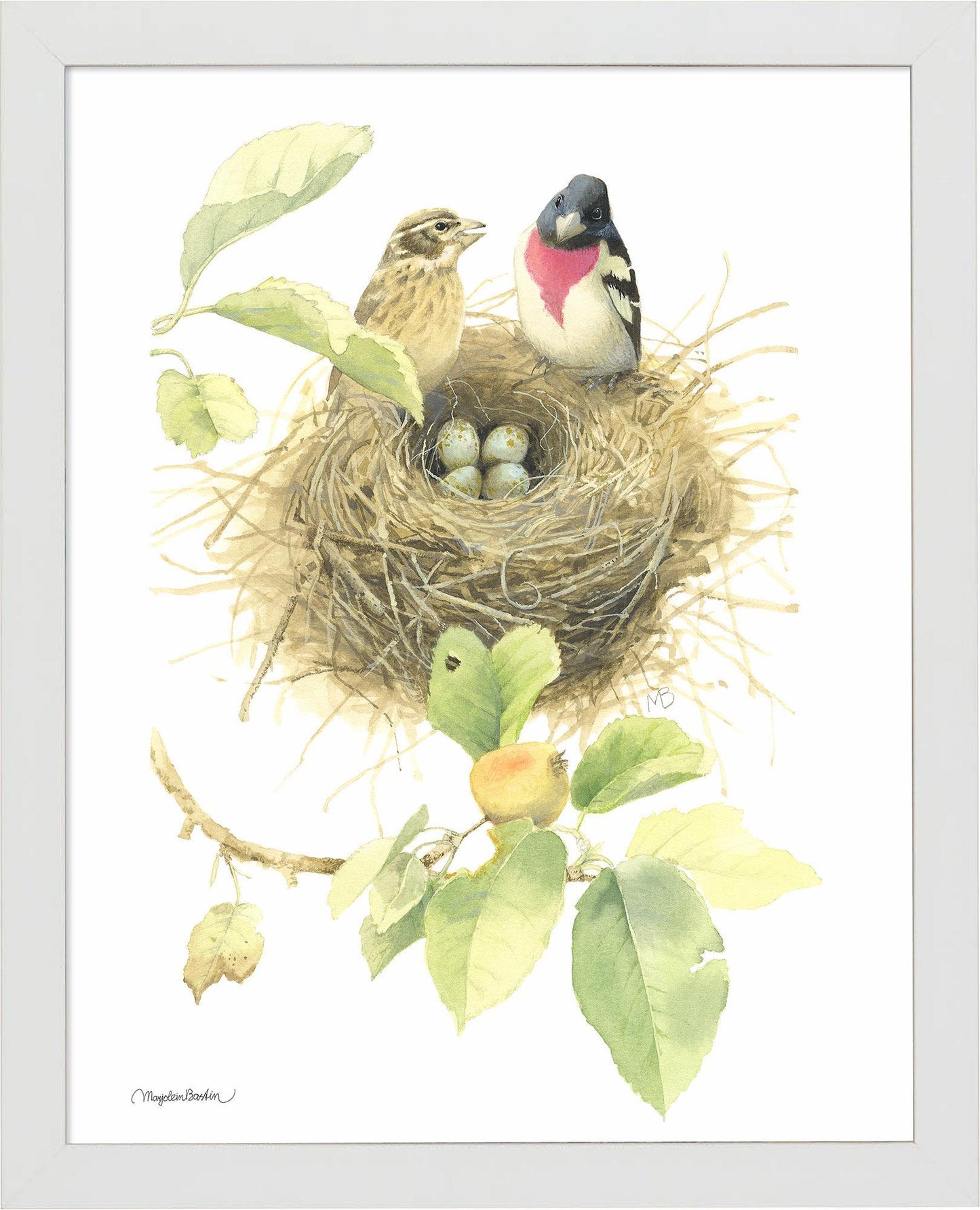 Open edition of 11" x 14" art prints of Rose-breasted Grosbeaks are the perfect size to fill a smaller space in your home. Published exclusively by Art Brand Studios. Made in USA.