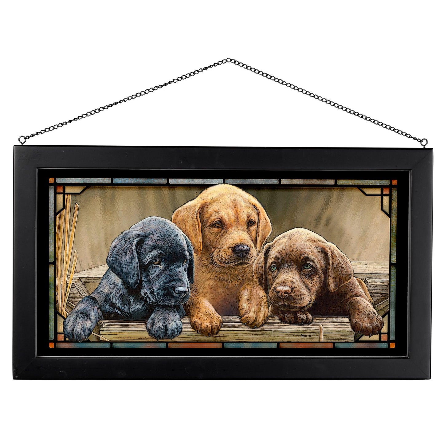 All Hands on Deck - Lab Puppies - 13" x 23" Stained Glass Art