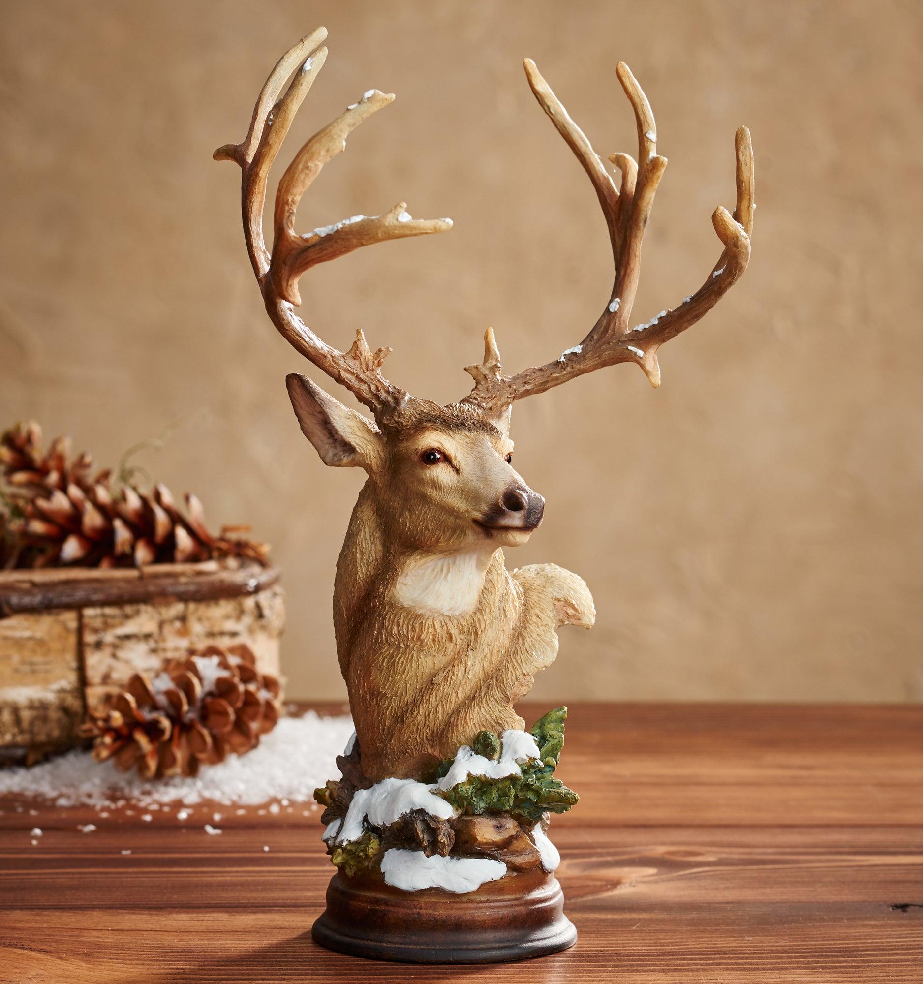 Mule Deer (Odocoileus hemionus) are easy to identify due to their large mule-like ears. They are brownish-gray in color, have a white rump patch and a small white tail with a black tip. Cold cast and hand painted in fine detail. 11"H x 6-1/2"W x 5"D.