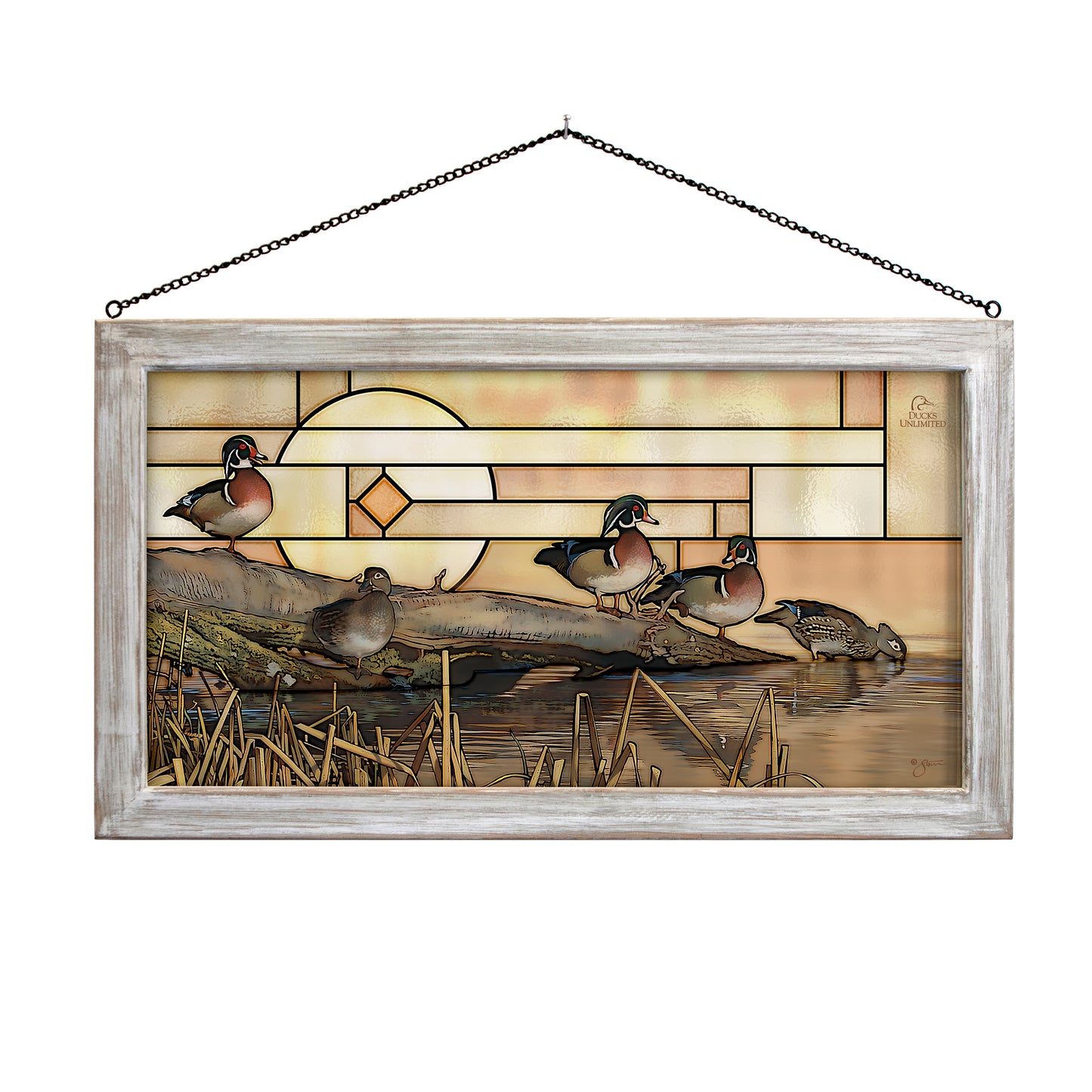 Resting Place-Wood Ducks - 13" x 23" Stained Glass Art