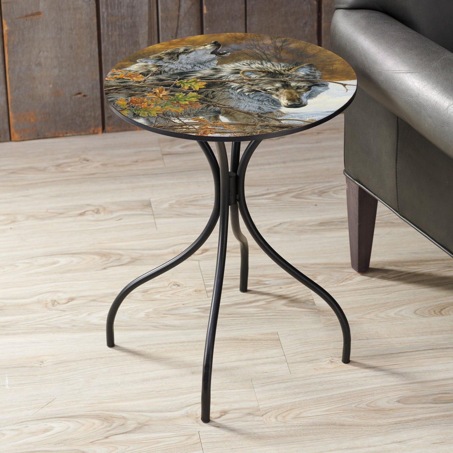 Metal side tables feature art from your favorite artists. May be used outdoors! Images are printed with durable, fade-resistant inks. Ships flat, some assembly required. Produced exclusively by Wild Wings. 22"H x 18" dia.