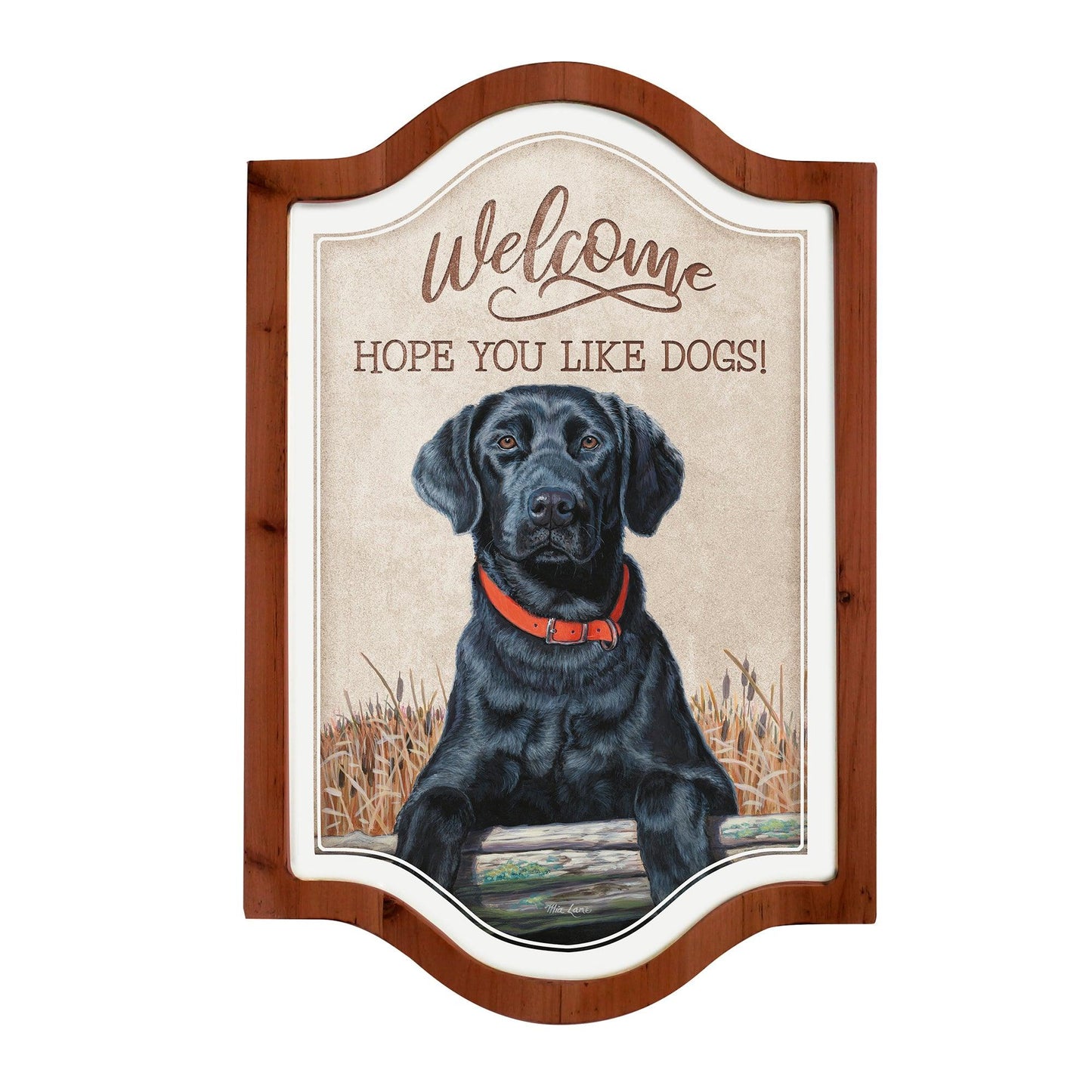 Hope You Like Dogs—Black Lab - 12" x 18" Vintage Framed Tin Sign