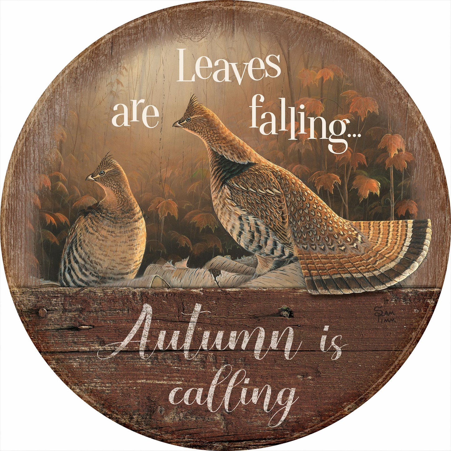 Autumn is Calling - Ruffed Grouse - 12" Round Wood Sign