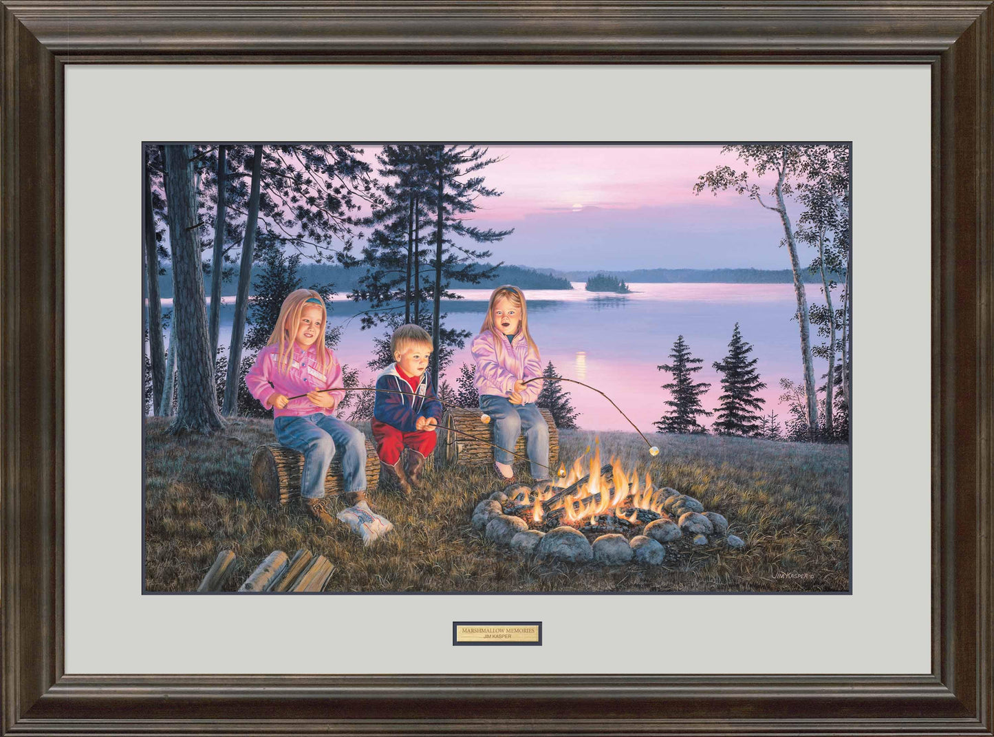 Limited edition of 750 signed and number art prints made from the original acrylic painting. Image size, 16-1/2" x 26". Framed size 27-1/4" x 36-3/4" with a 2-3/8" espresso walnut-finished moulding. Double matting with a Pumice outer mat and brass nameplate. Published exclusively by Wild Wings.