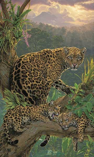 As the afternoon rains subside and evening approaches, we find a mother jaguar and her cubs the rulers of all they see from their 'Family Tree'.