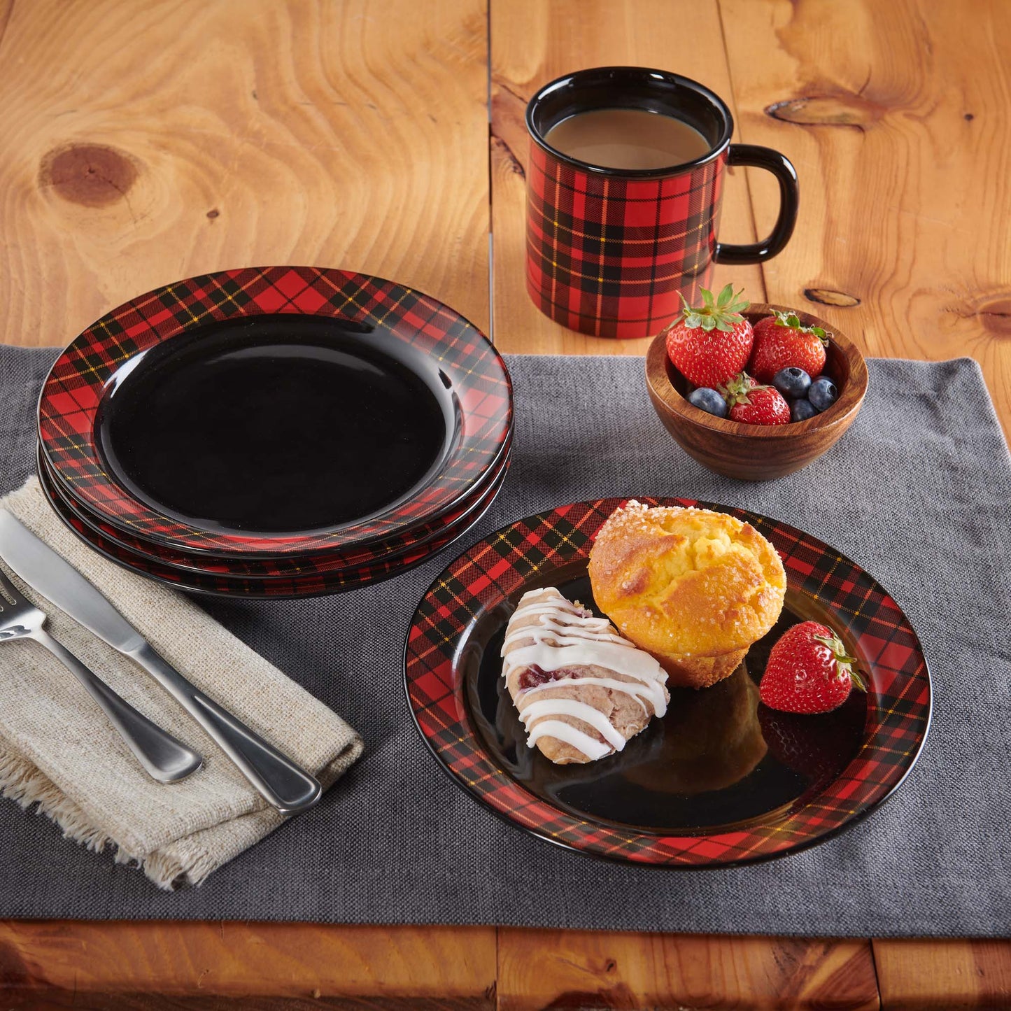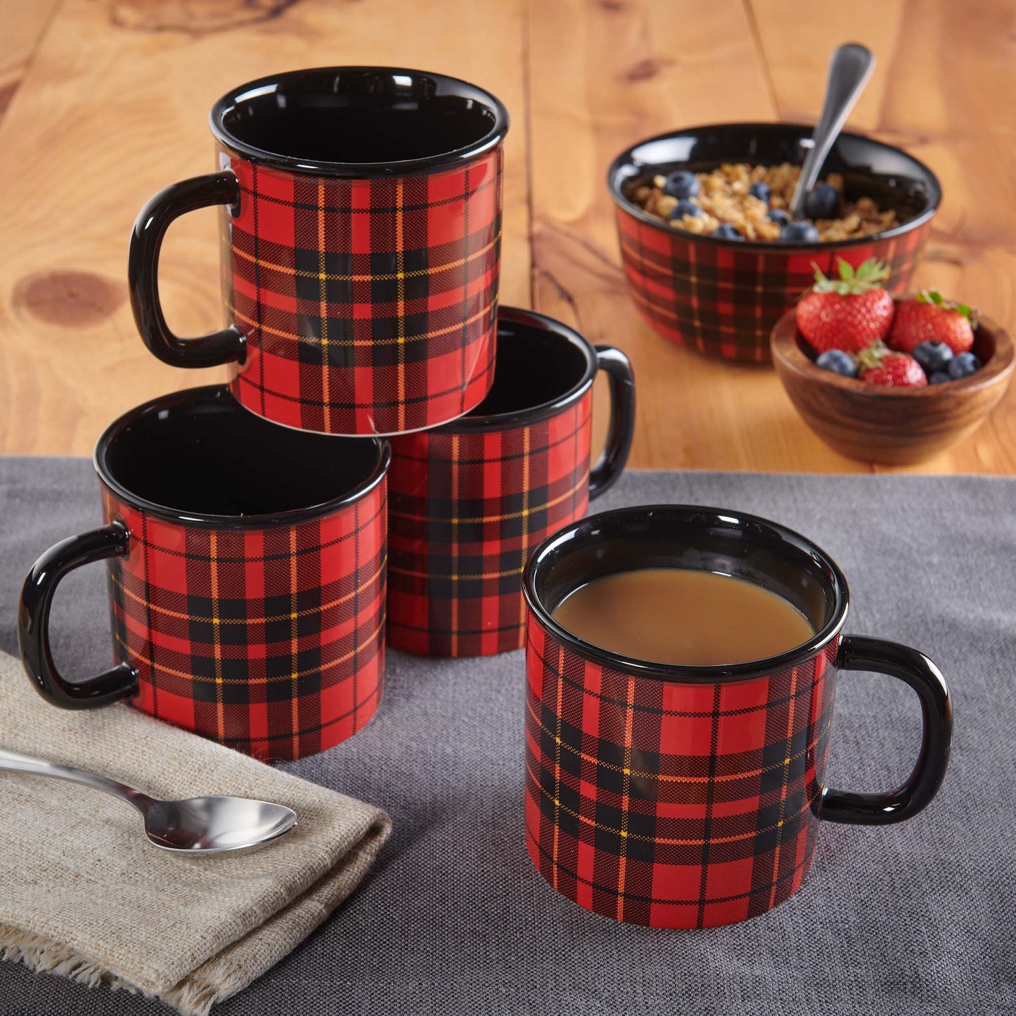Coming back from the hunt? Whether it’s for dinner or for the perfect tree, settling down at the table with these dishes will complete your experience. A sporty plaid pattern lines the rim of the plates and the outside of the mugs and bowls, with solid black in the middle. Choose from 4 ceramic pieces each – dinner plates, salad plates, cereal bowls, or mugs – or order all for the complete set.