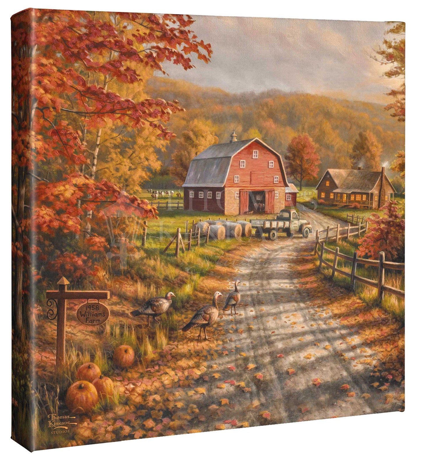 Autumn is one of the most beautiful times of the year. The sun begins to set earlier in the evening, and a brisk breeze rustles the colorful leaves on the trees. In Late Afternoon on the Farm, the artists of Thomas Kinkade Studios explored what lay around the corner in A Walk Down Autumn Lane, and “William’s Farm" appeared nestled serenely in the hills.