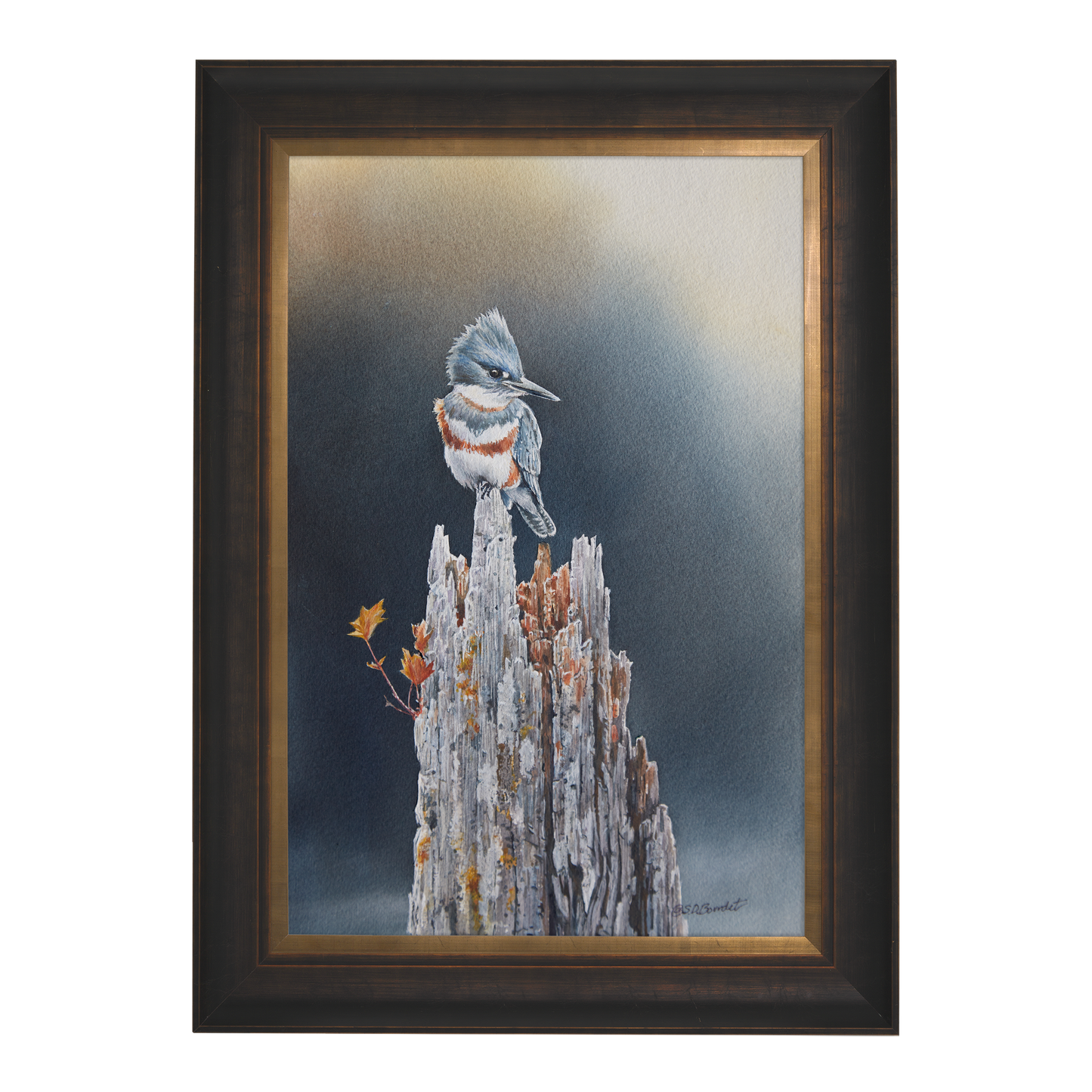 An old piling along a river estuary is a favorite fishing post for this female Kingfisher. Her plunging dives into the water were often rewarded with a little fish, and I was amazed by her patience and accuracy.About the Product