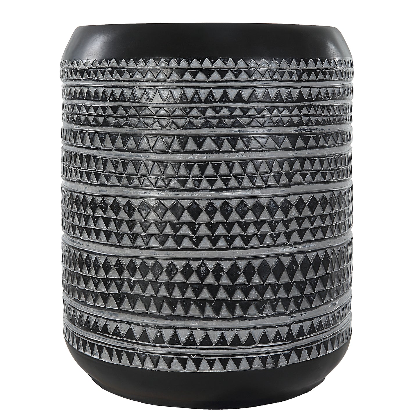 Make a fun tribal statement with the cutting edge accent table, formed from cast resin in a chalk black and gray pairing with recessed textures.