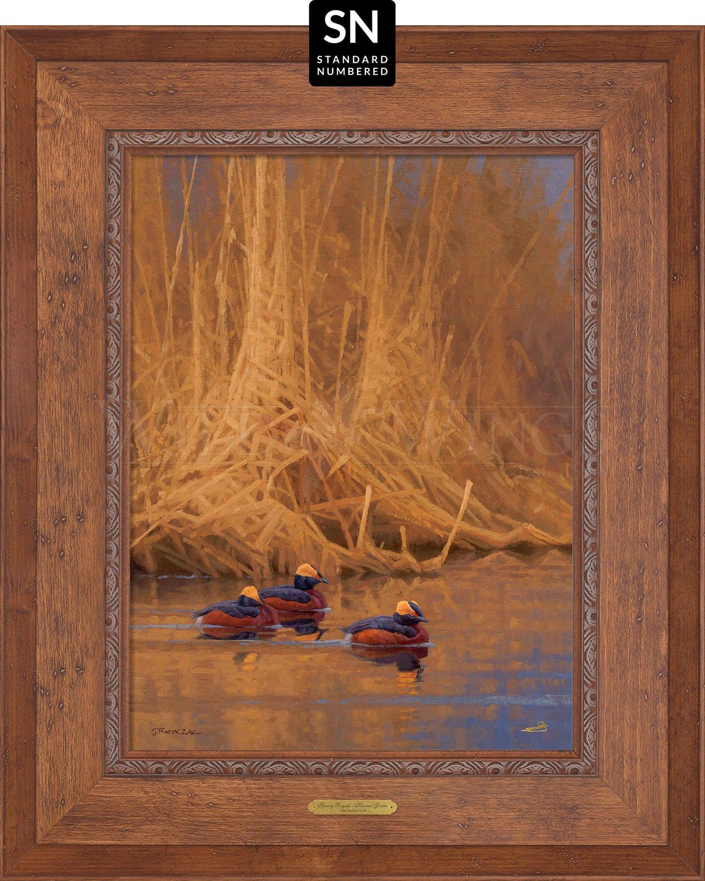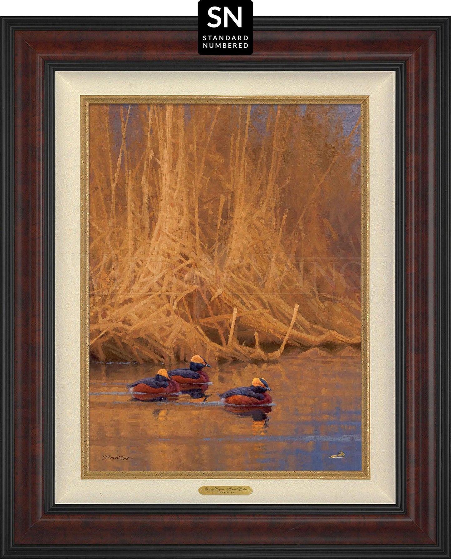 Wild Wings' Master Artisan Canvas Collection combines old-world craftsmanship with exquisite materials and cutting-edge production technology to produce remarkable Limited Edition canvas artwork. Published in the highly-collectible Standard Number (SN) edition sizes, these paintings are perfect for those who appreciate exclusivity and desire heirloom art. Each piece is hand-embellished by skilled artisans, capturing the details of the artist's original brushwork using fine acrylic paints. Long-life pigment inks outperform conventional press inks, ensuring the vibrancy and longevity of your artwork. Choose from five hand-crafted, museum-quality wood frames to complement any home decor.