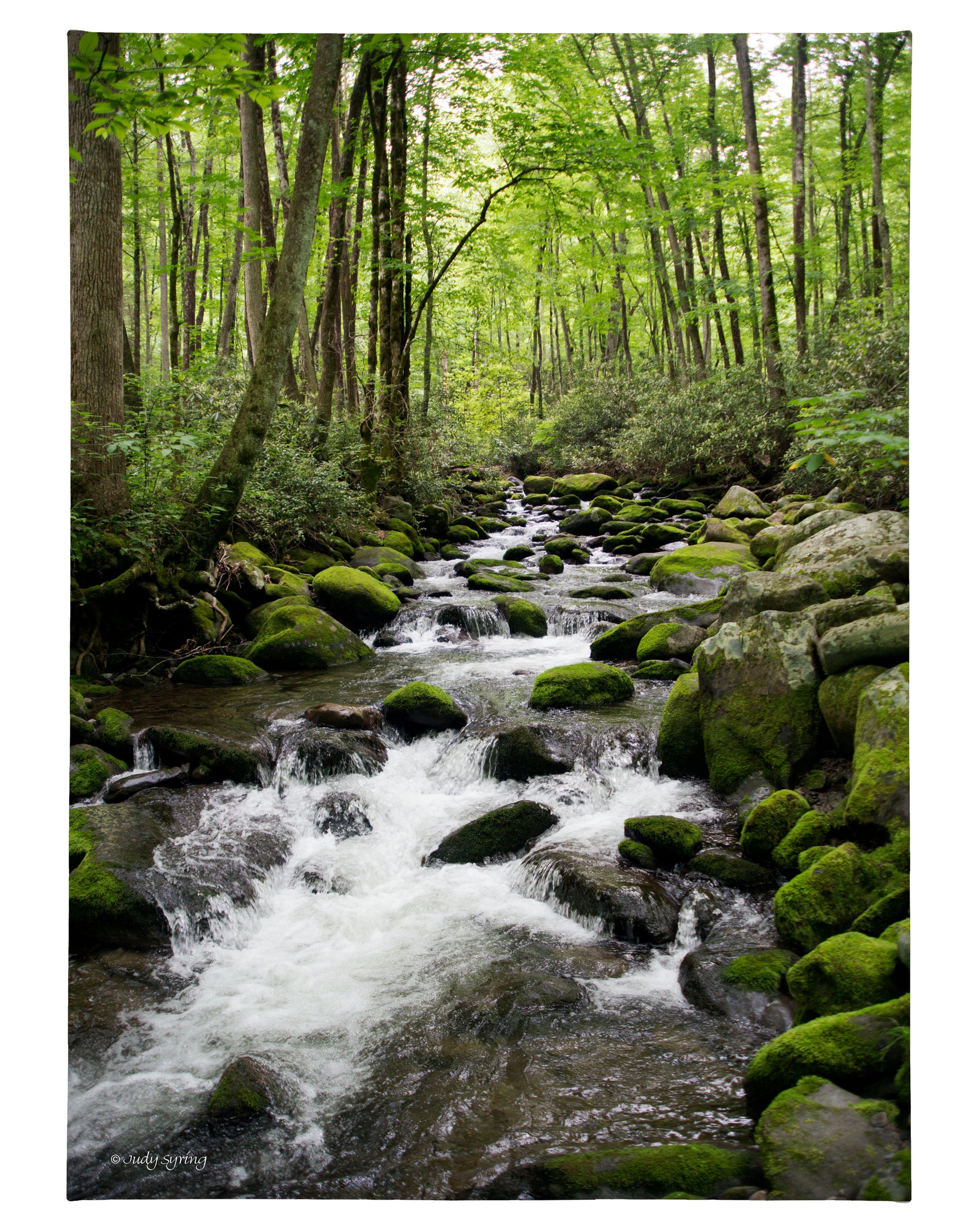 When driving through the Smoky Mountains, one will come across various woodland streams. They are inviting and call to you to come sit and enjoy the peace and quiet of their babbling waters.