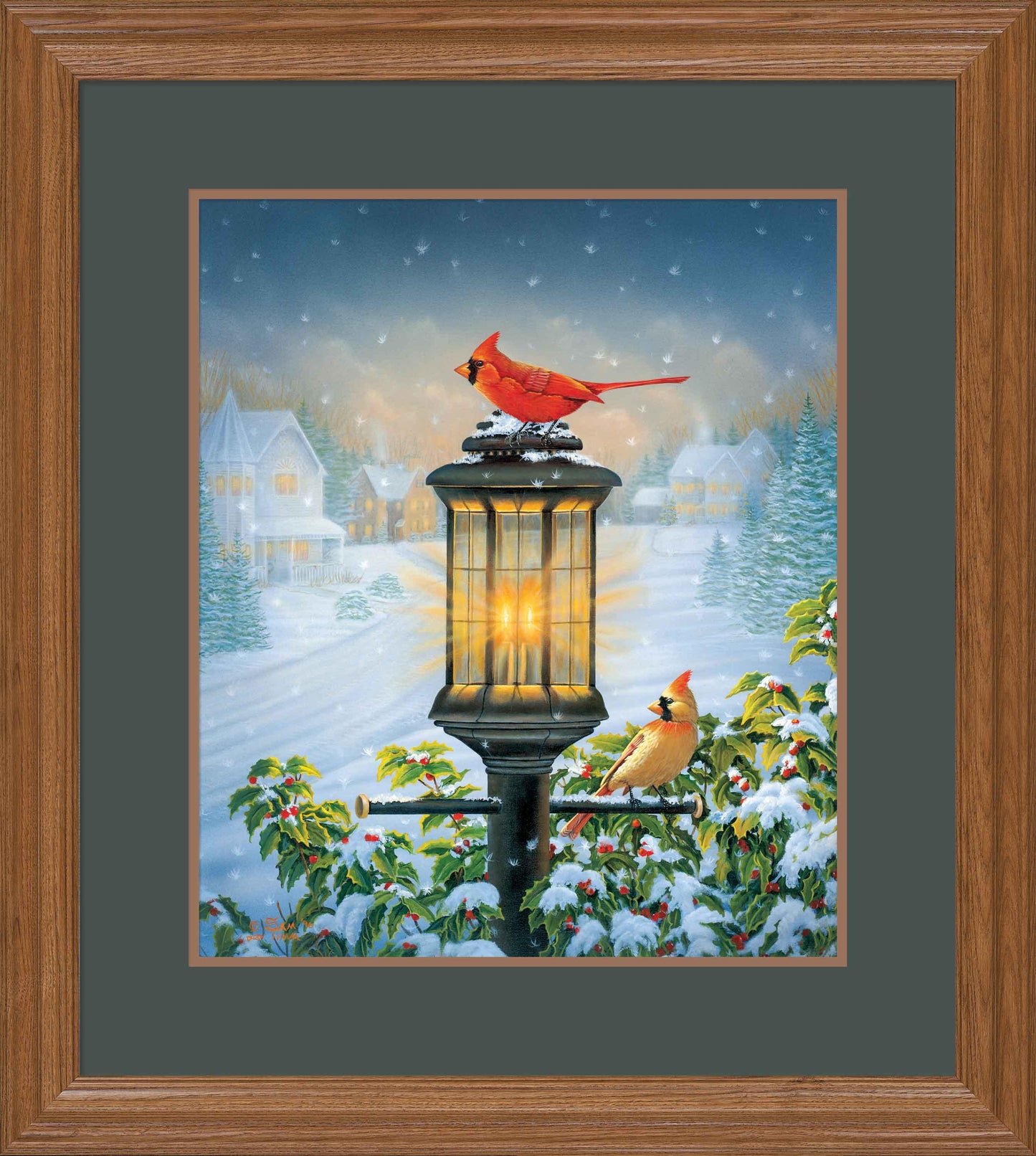 Limited edition of 950 signed and numbered prints. Image size, 19" x 16". Framed size, 29" x 26" with 2" fruitwood-finished moulding. Double matting with Spruce outer mat and brass nameplate. Published exclusively by Wild Wings.