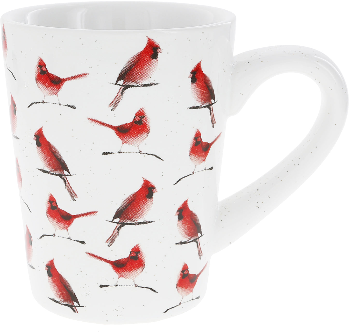 The Pavilion "Cardinals" coffee mug is a premium-quality stoneware ceramic cup designed as a touching tribute to honor the memory of a loved one. Crafted with a glossy white finish, this mug signifies the enduring love within our hearts even after the physical loss, offering a peaceful and comforting reminder of cherished memories. Featuring an in-house design with red cardinals perched upon branches in a repeating wrap-around pattern, symbolizing the presence of loved ones watching over us, the speckled finish adds a nice touch, providing solace and a lasting tribute to the eternal shared bond. Packaged in a die-cut box with a red ribbon tied silver to/from heart-shaped tag, it's dishwasher safe but not suitable for microwave use due to the metallic wording. Pavilion offers a diverse range of thoughtful gifts, including mugs and spiritual items, providing meaningful ways to cherish the memory of loved ones during times of loss.