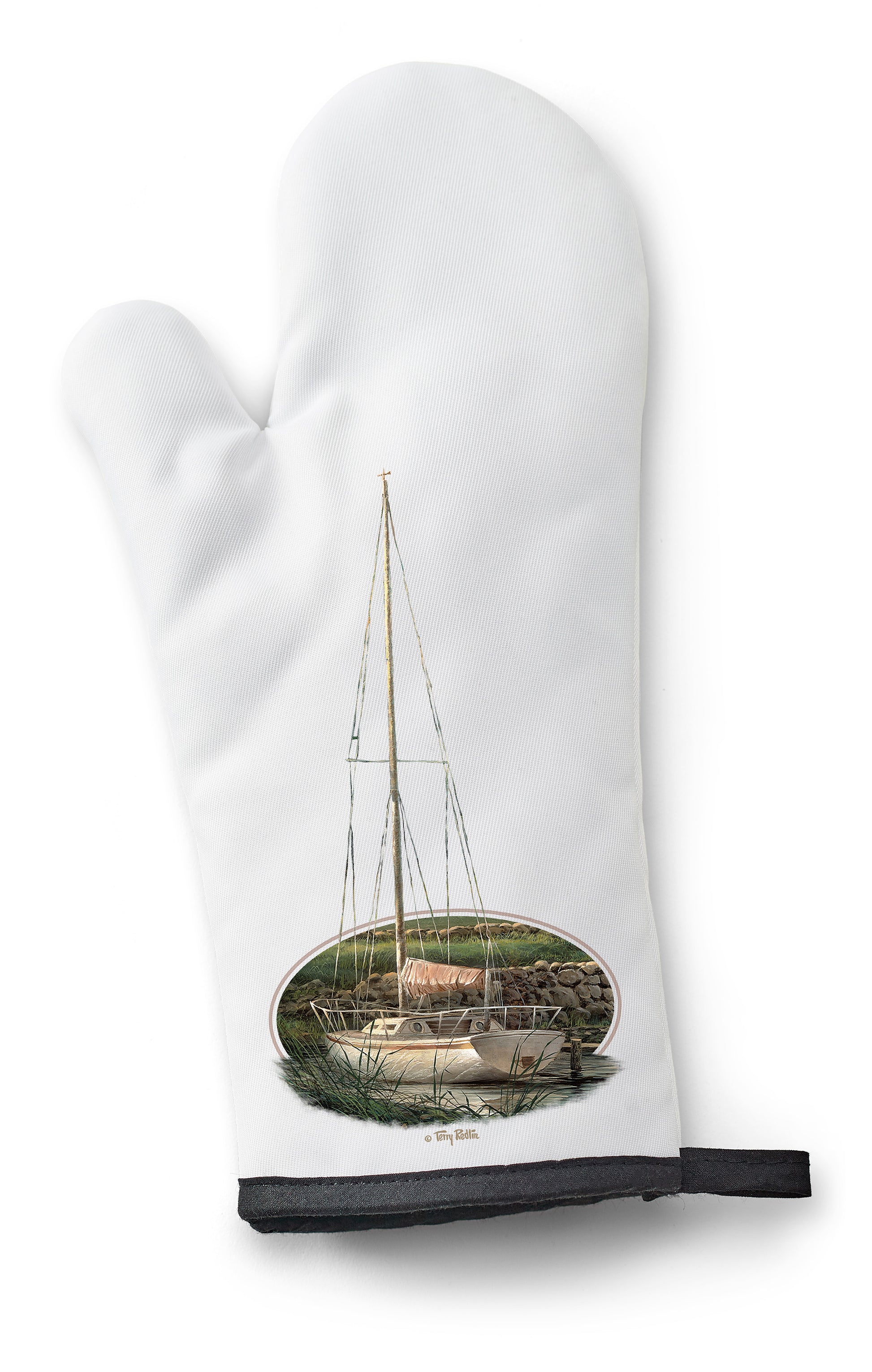 Mix in a dash of nature with our kitchen essentials. Beautiful images and scenes are printed, and heat cured for bold, high quality, and long-lasting wear. Black accent piping. Soft quilted interior. 50/50 cotton/poly blend. Machine washable. Designed and printed in the USA. 13"H x 7"W. Left-handed oven mitts are available upon request.