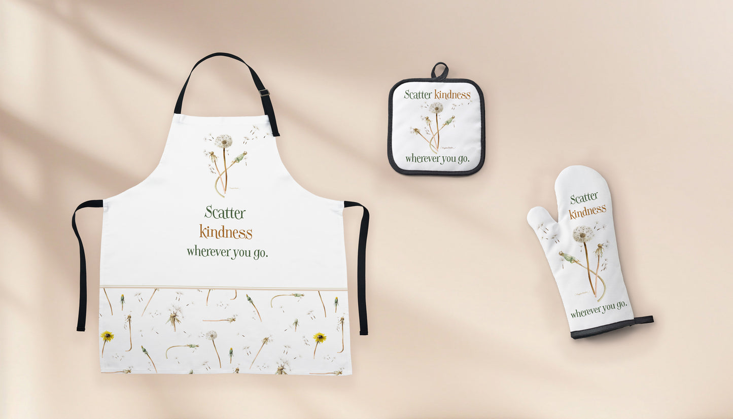 Embrace warmth and positivity in your kitchen with The Scatter Kindness Collection, featuring the artwork of Marjolein Bastin. This elegant collection features delicate dandelions with soft, nature-inspired hues and an uplifting message: Scatter kindness wherever you go. The minimalistic yet charming design captures the gentle beauty of nature and the power of small acts of kindness. Perfect for those who love inspirational décor, this collection adds a touch of serenity and mindfulness to everyday cooking and gatherings.