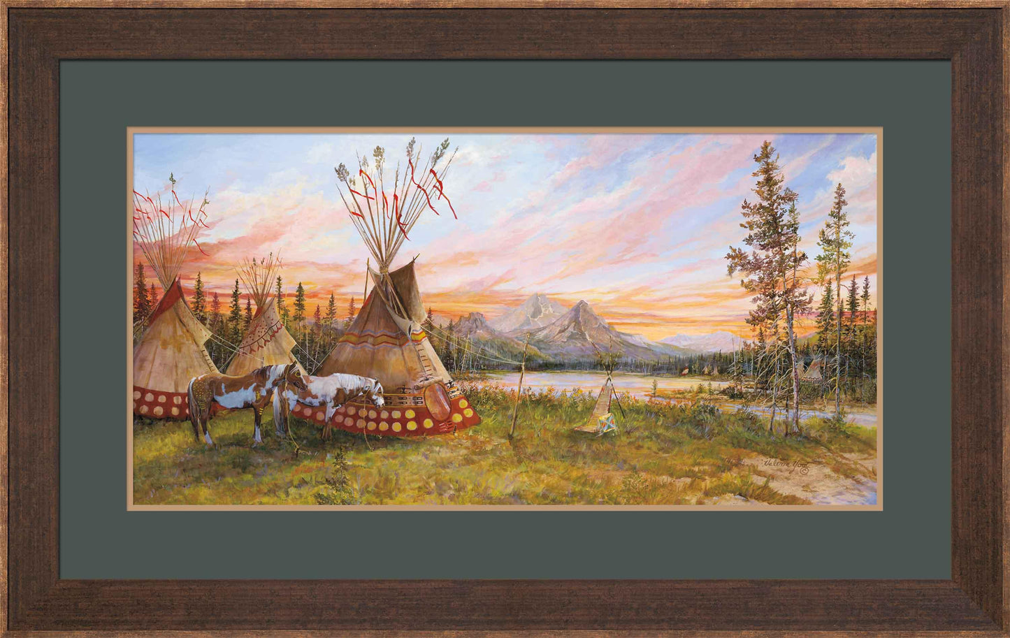 My family and I have had the pleasure of spending many days camping with our lodge. I love the evening time it is my favorite time. This is a plains tribe family encampment. They have gone to the mountains to cut new teepee poles. This could be a special time around the evening fire.