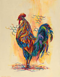 "We raised colored corn this year. Indian corn This is what happens when you feed your chickens colored corn. They wandered in and out of the corn patch and in my mind I just had to paint them. Pure fun!"—Valeria Yost