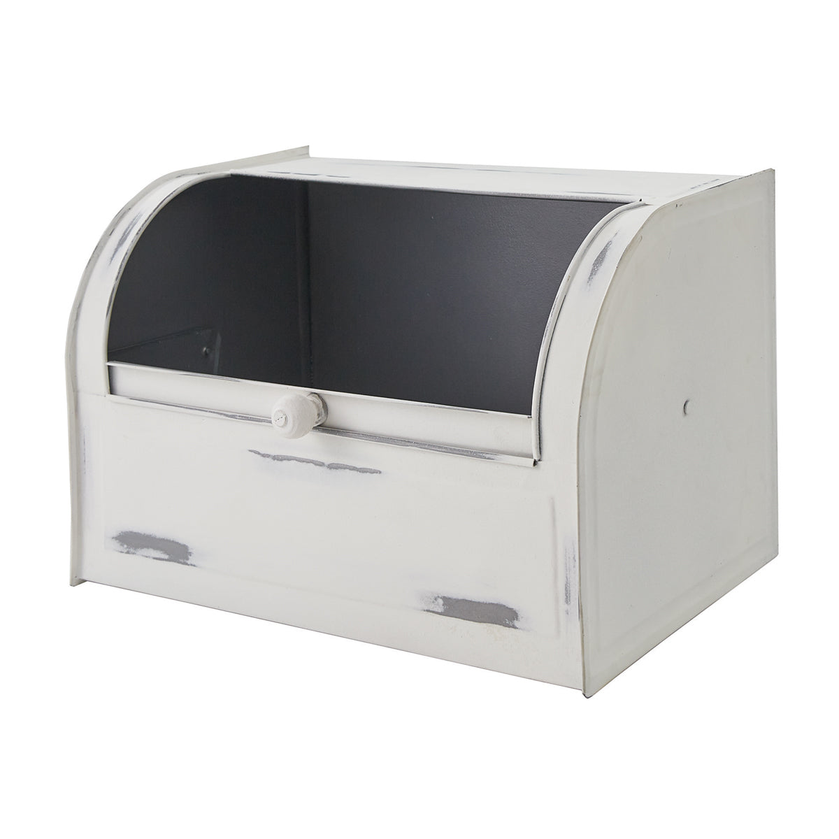 The Lane Bread Box combines practicality with rustic charm, making it a perfect addition to any kitchen. Crafted from durable metal with a distressed off-white finish, it brings a vintage touch to your countertop. This spacious bread box measures 9.25"H X 14"W X 9.25"D, providing ample storage for your bread, baked goods, or snacks. Its classic design ensures freshness while adding a stylish, farmhouse-inspired element to your kitchen decor. Ideal for keeping your essentials organized and within reach.