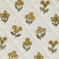 Add a touch of elegance to your dining space with the Golden Acres Table Runner. Crafted from soft cream-colored cotton fabric, this quilted table runner features a timeless design with delicate scalloped edges for a refined look. The surface is adorned with a charming print of yellow flowers with green stems, bringing warmth and beauty to any table setting. Measuring 54 inches long by 13 inches wide, it is the perfect accent for dining tables, sideboards, or coffee tables. Ideal for everyday use or special occasions, this table runner combines style and functionality to enhance your home décor.