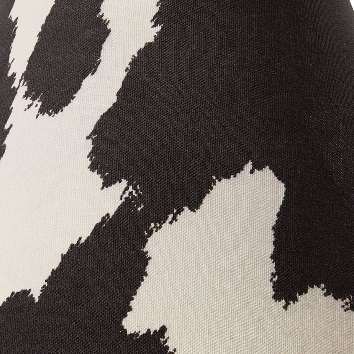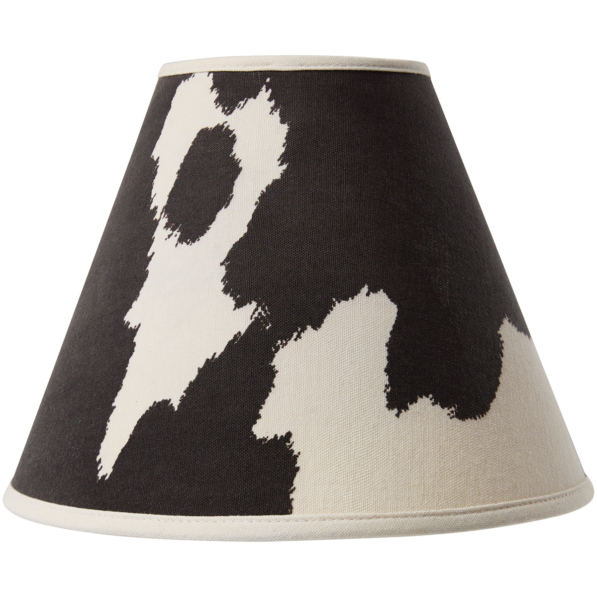 Infuse your space with rustic charm using the Cowhide - Holstein Lampshade. Crafted from 100% cotton fabric over an opaque backing, this lampshade features a bold Holstein cowhide print that adds a touch of countryside elegance to any room. Hand-trimmed and sewn for impeccable quality, it includes a washer fitting designed for use with a harp and finial, ensuring a secure and stylish fit. Measuring 8.5" in height, with a 6" top diameter and a 12" bottom diameter, this lampshade is perfect for enhancing your favorite lamp with a unique and cozy accent.