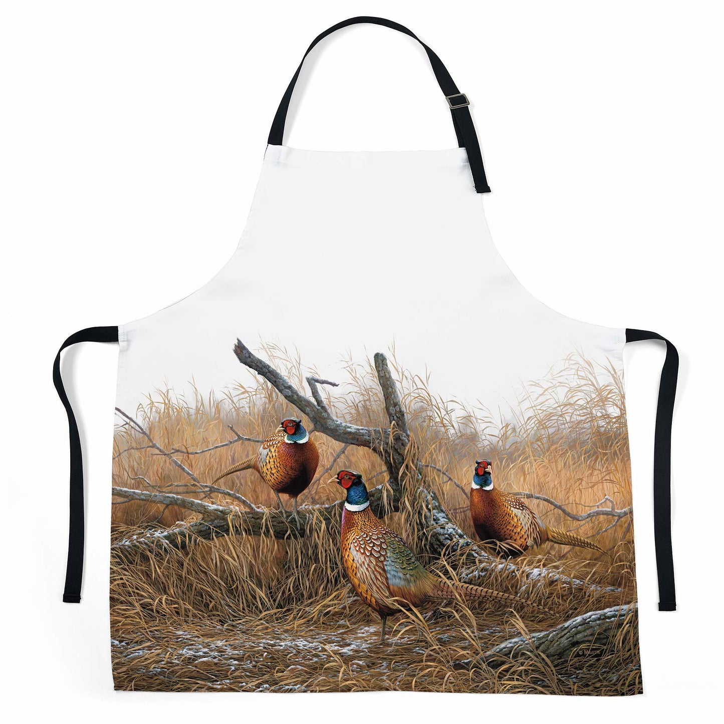 Now we're cooking! Mix in a dash of nature with our kitchen essentials. Beautiful wildlife images and scenes are printed, and heat cured for bold, high quality, and long-lasting wear. Apron boasts black accents with adjustable strap for custom fit, and tie back. 50/50 cotton/poly blend. Machine washable. One size fits most. Apron size excluding straps: 34"H x 29"W. Published by Wild Wings ® a division of Art Brand Studios, LLC. Designed and printed in North America.
