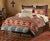 Jewel tones of red, green and gold enhance the Aztec inspired geometric design in this vibrant quilt set. Reverses to subtle cream and tan simple geometric design. Set includes comforter and two 21" x 27" pillow shams. Quilt is 100% cotton with 100% polyester filling. Quilt and matching shams are machine washable. Imported. Queen/Full Quilt is 92" x 96"