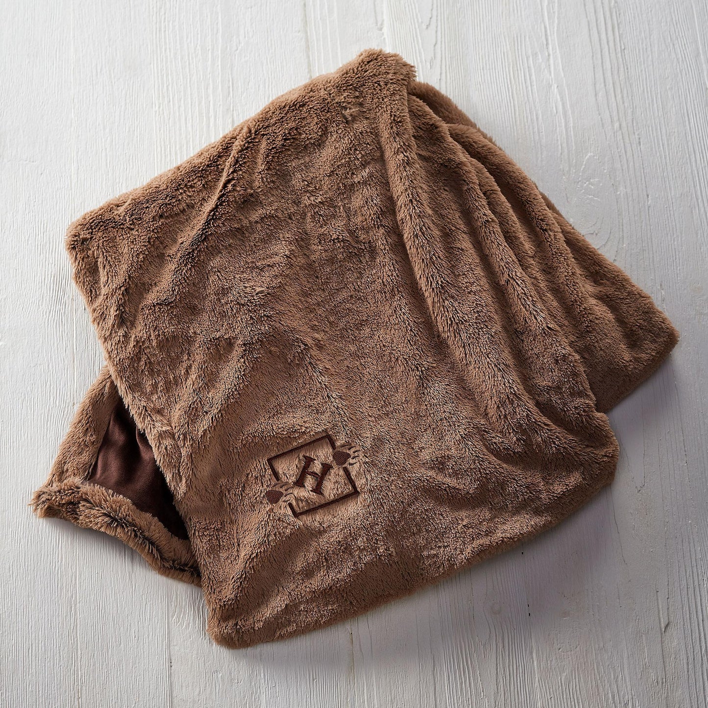 All tracks lead to warm, cozy comfort! Snuggle into this ultra-soft rich faux fur blanket. Tone on tone with rich mocha brown and dark brown embroidery. Machine washable. Faux fur with poly/spandex backing. Imported. 50" x 60" Choose either bear or deer tracks. Personalized first initial.