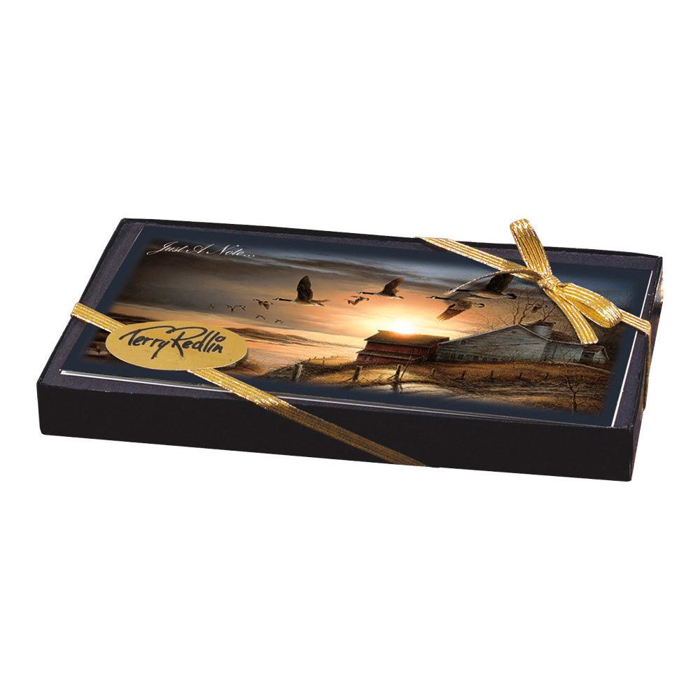 High quality note cards featuring the wildlife art of Terry Redlin. 12 cards, 13 envelopes. 4" x 7 1/2 ". Gift boxed. Blank inside. Made in the North America.