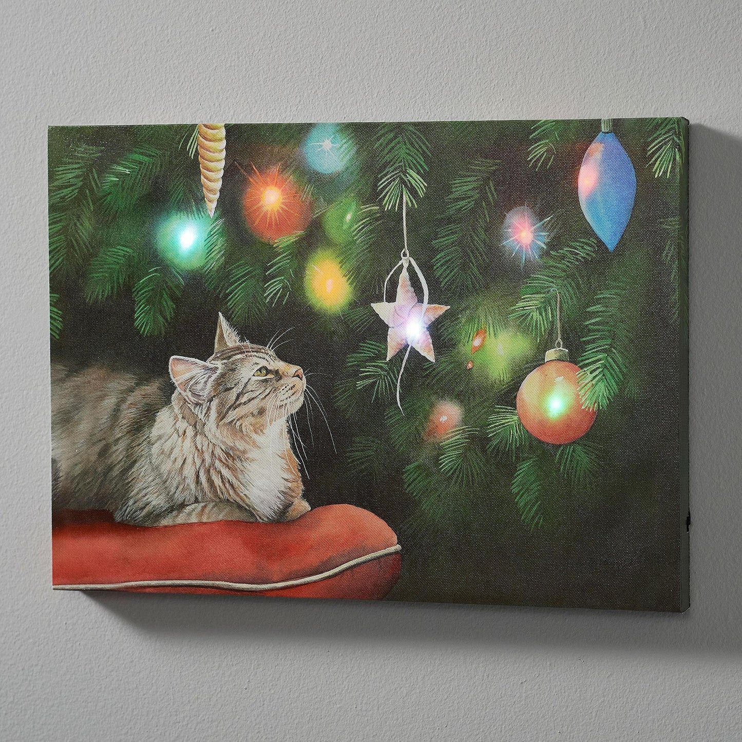 Holiday Dazzle - Cat - 13" x 18" Lighted Wrapped Canvas