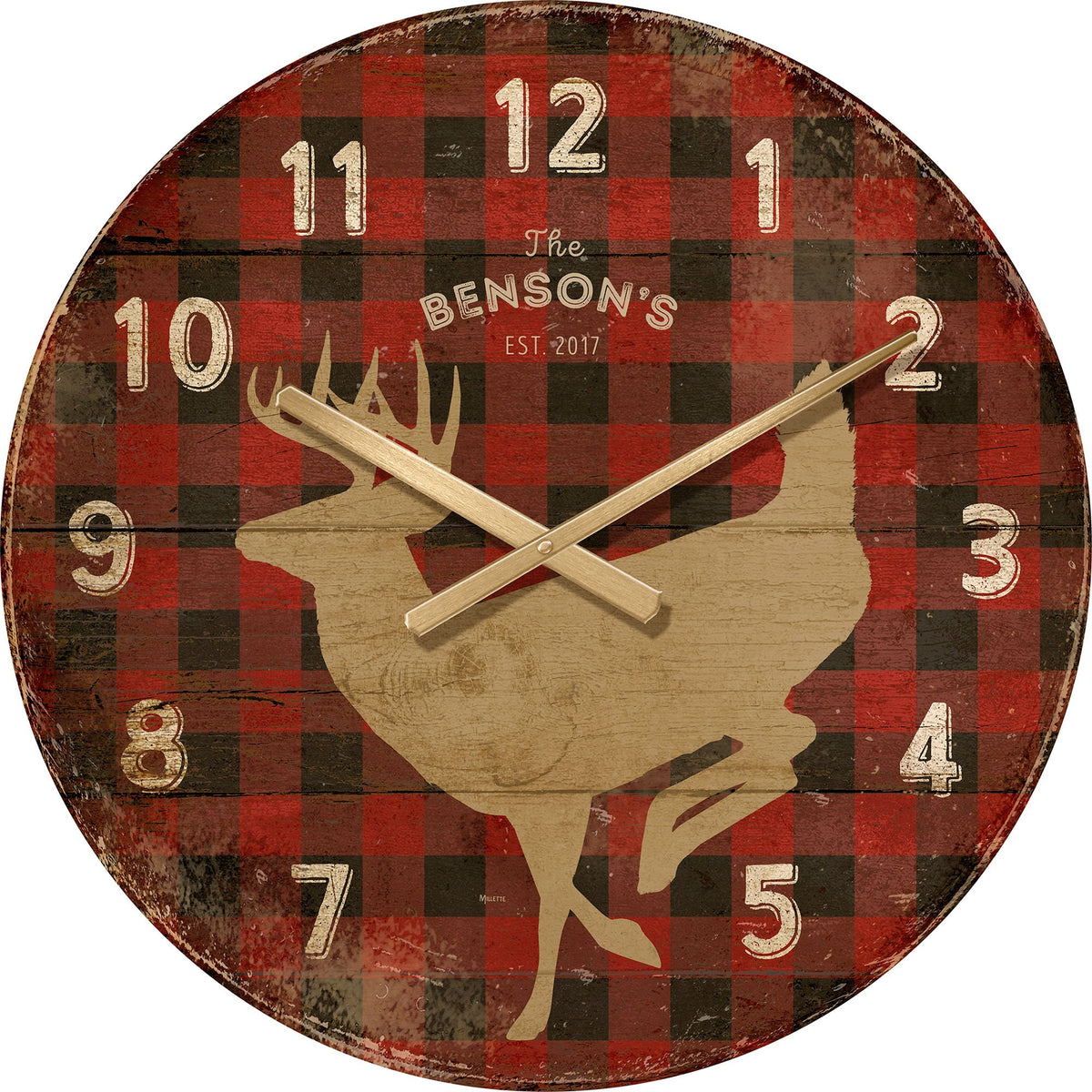 This clock wins rave reviews. Printed with high-quality inks on wood. Precision quartz movement uses one AA battery (not included). Produced exclusively by Wild Wings. 21"dia. Enter personalized details during checkout.