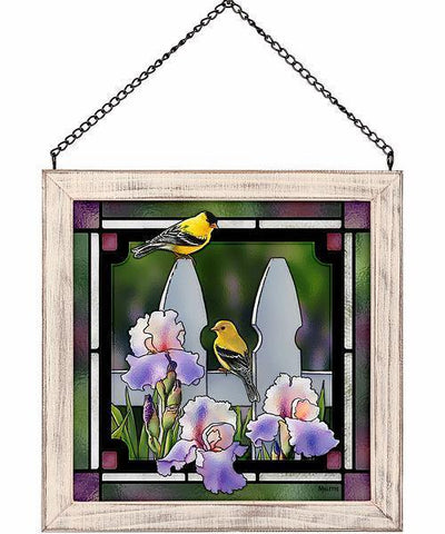 Let the light shine! New stained glass art hangings show their true colors when back-lit with natural sunlight. Popular designs are printed on glass with fade resistant inks and framed with 3/4" white-finished moulding. Framed size 9" x 9". Ready to hang with provided chain. Designed, printed, and assembled in North America.