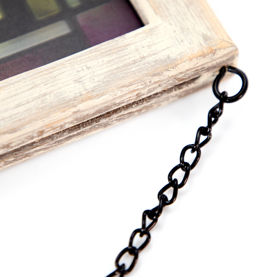 Let the light shine! New stained glass art hangings show their true colors when back-lit with natural sunlight. Popular designs are printed on glass with fade resistant inks and framed with 3/4" white-finished moulding. Framed size 9" x 9". Ready to hang with provided chain. Designed, printed, and assembled in North America.