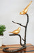 Contemporary styled sculpture features a sleek design of two metallic gold birds at rest on a twisted wrought iron branch. 18¼"H x 14"W x 11"D.