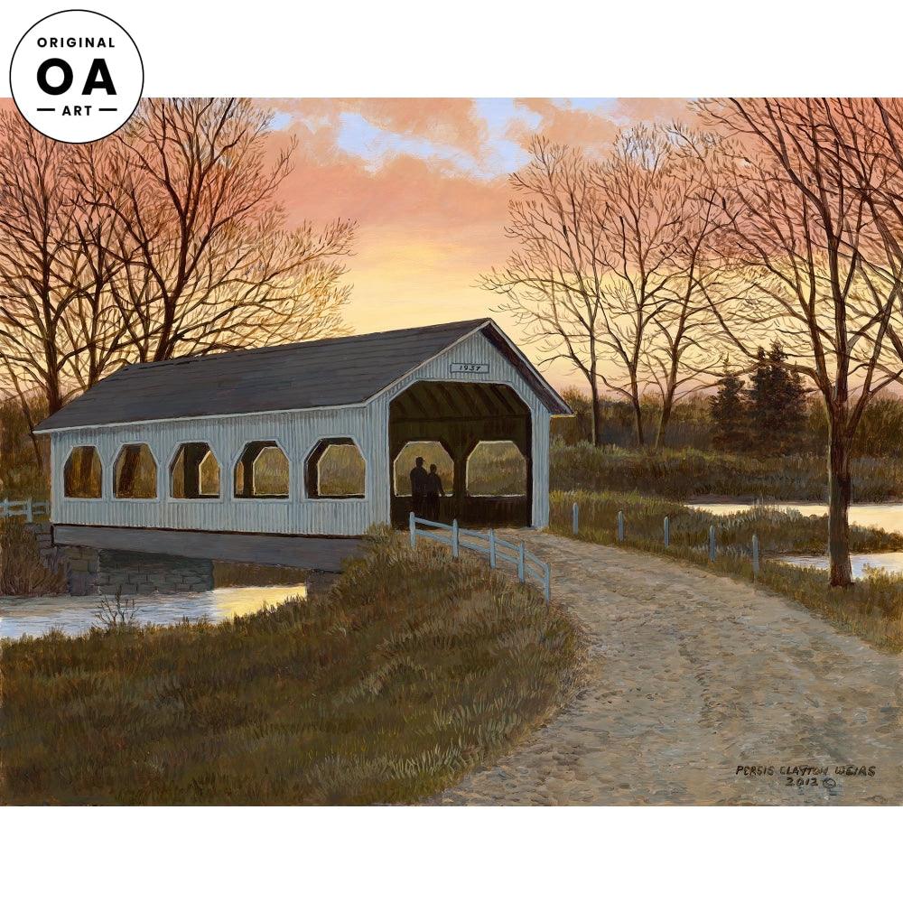 A covered bridge during sunrise is shelter to those that are willing to get up early enough to experience the beautiful morning.