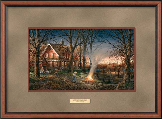 The Autumn Evening painting will instill a calming atmosphere in any room it’s featured in with its rich shades of hazel, blue and green “As entire families prepare their lawns for winter, the sweet smell of burning leaves permeates the air. I remember those autumn evenings as youthful contests. How big and bright could you make the fire? And how many times could you jump through the flames and smoke before a nearby adult called a halt to the fun.` The Autumn Evening painting makes you think of simpler times and will act as a relaxing focal point to any living room or bedroom.