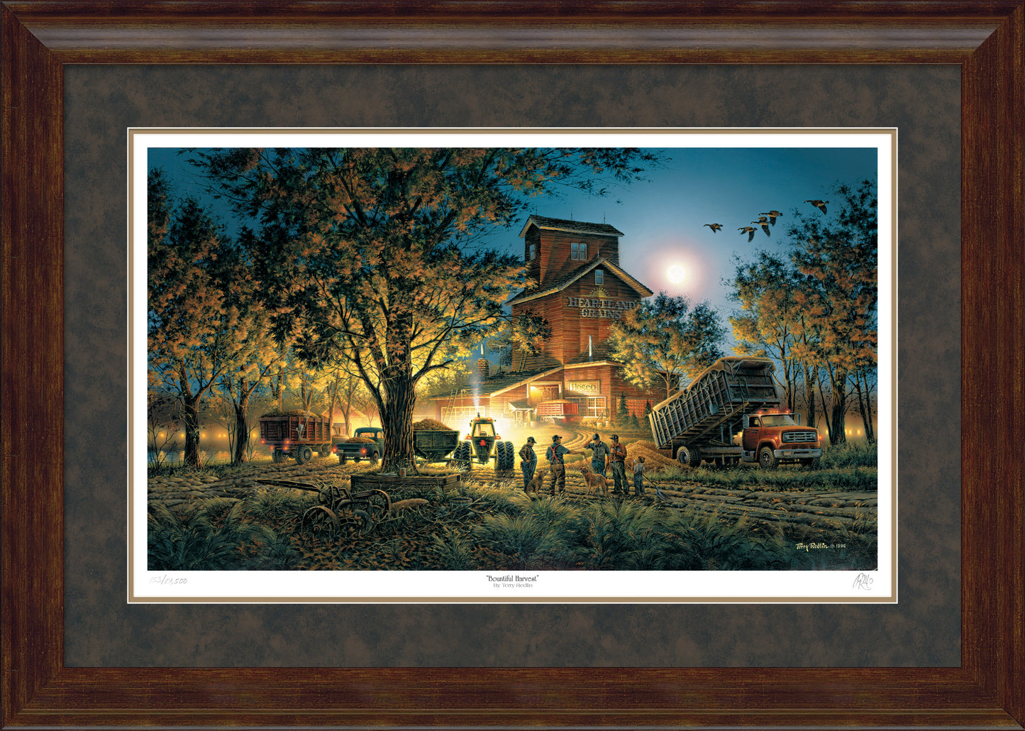 Limited edition of 19,500 signed and numbered art prints made from the original oil painting. An Artist Proof of 1,950 signed and numbered prints is also available. Image sizes of both prints, 16-1/2" x 28-1/2". Choose from 3 framing options. Encore Canvas open edition canvas. Image size, 14" x 24". Choose from 2 framing options. Encore open edition, Image size, 14" x 24". Open edition linen art print. Image size, 5-1/4" x 9-1/4". Only available framed.