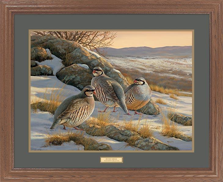 “At home in the semi-arid mountain slopes of the West this small grouping of Chukars blend into the surrounding rocks and sparse vegetation.”