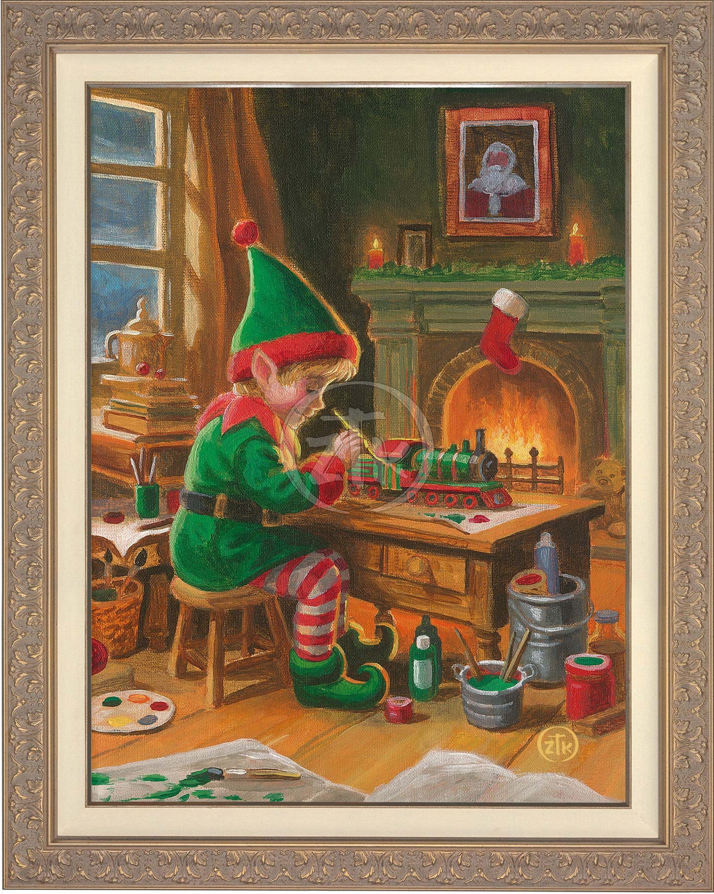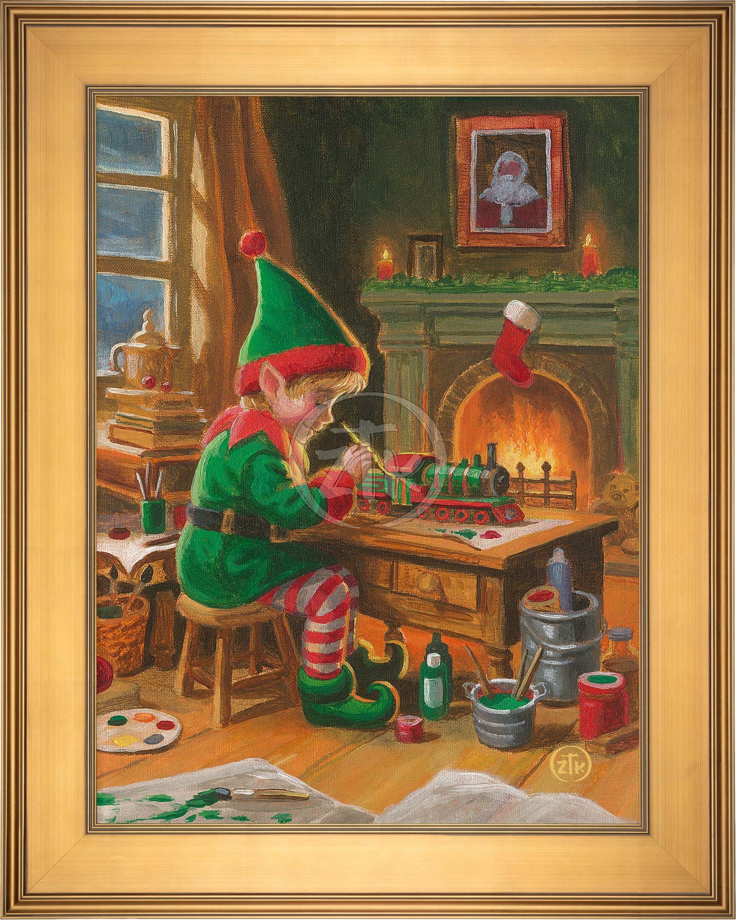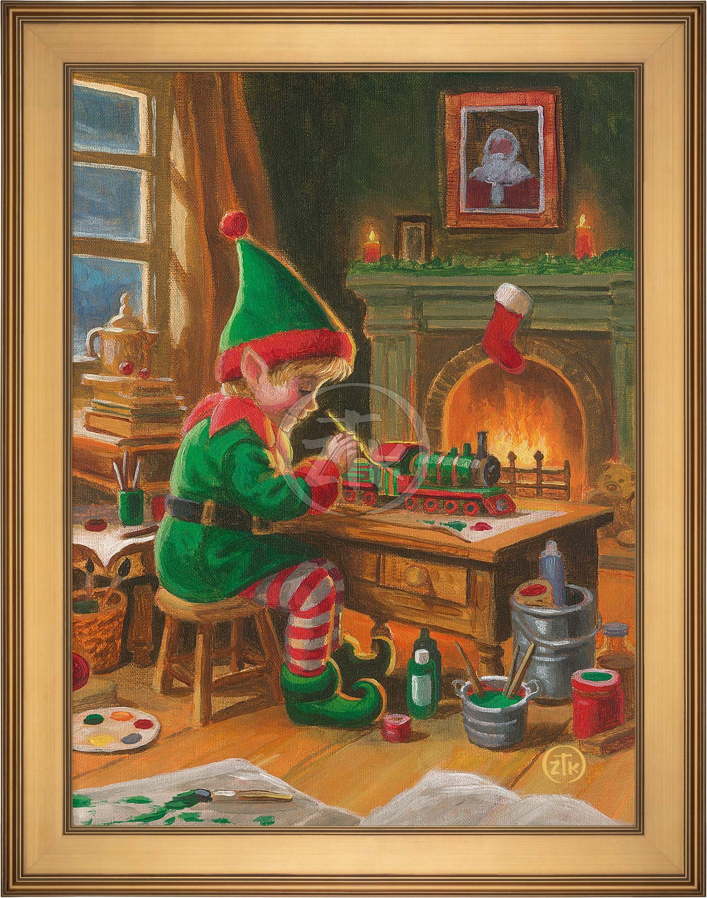 While the magic of Old Saint Nick fills the hearts of all those who love Christmas, he is not the only one responsible for our yule-tide holiday traditions. Indeed, he may deliver the toys to the millions of deserving children who are listed on his "nice" list but, it is the North Pole Elves that make the gifts in the amounts needed to fill the space under the tree. Santa's little helpers are there to launch Santa and his bountiful sack on his hurried flight to the houses of all believers. Put simply, he needs them to fulfill his Christmas Eve calling. I try to capture both the enchantment and practical effort of these magic helpers in my latest holiday painting, Santa’s Little Helper.