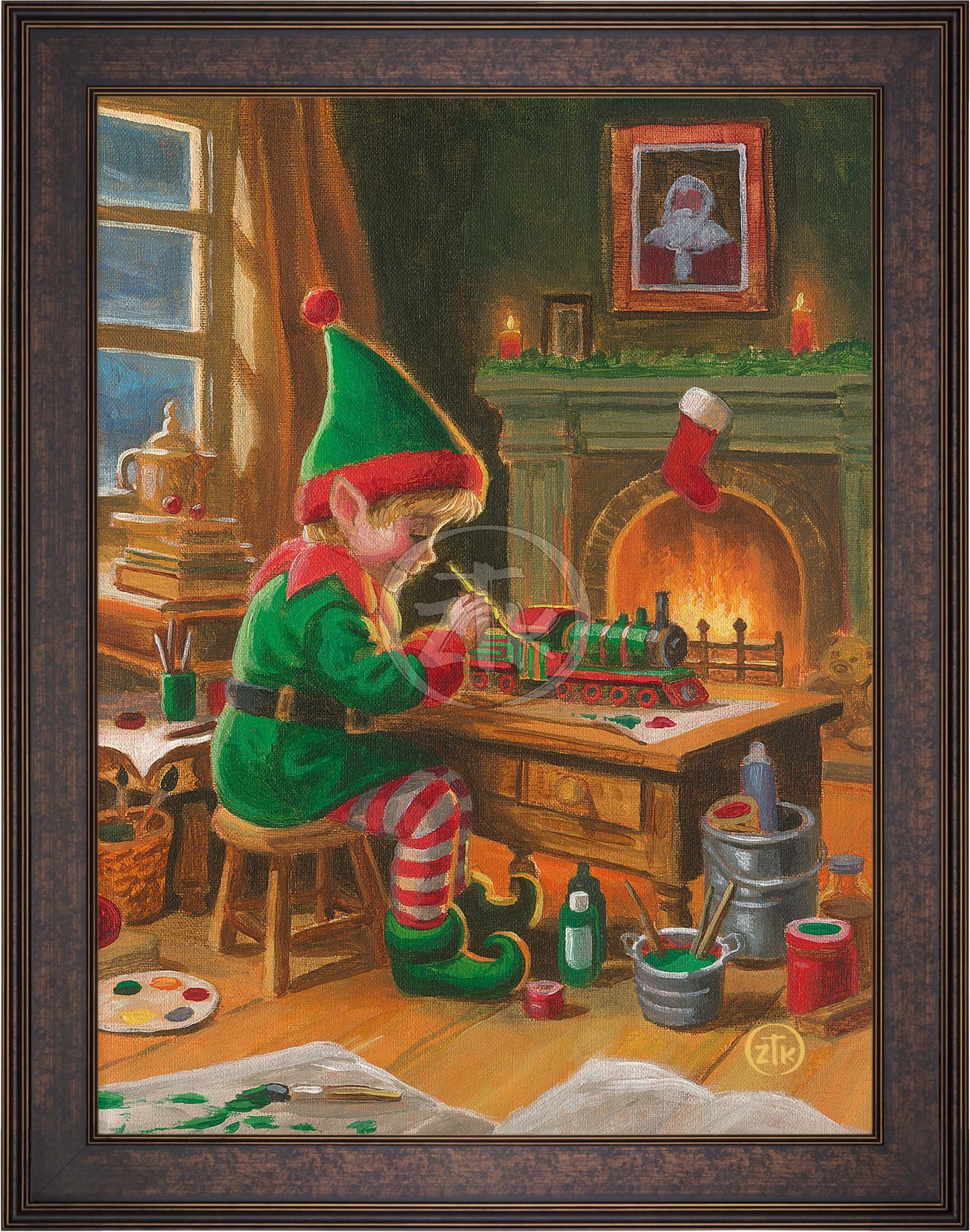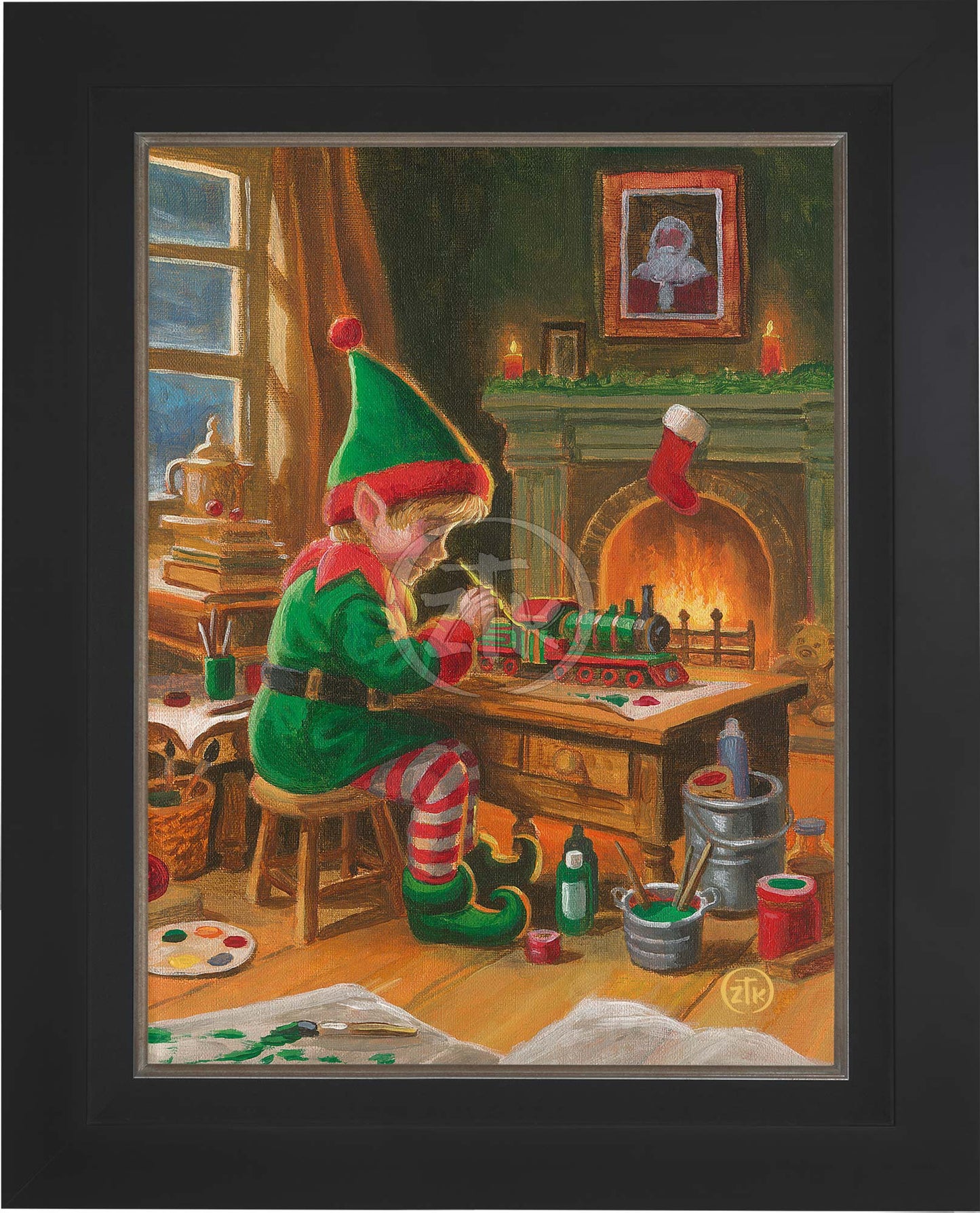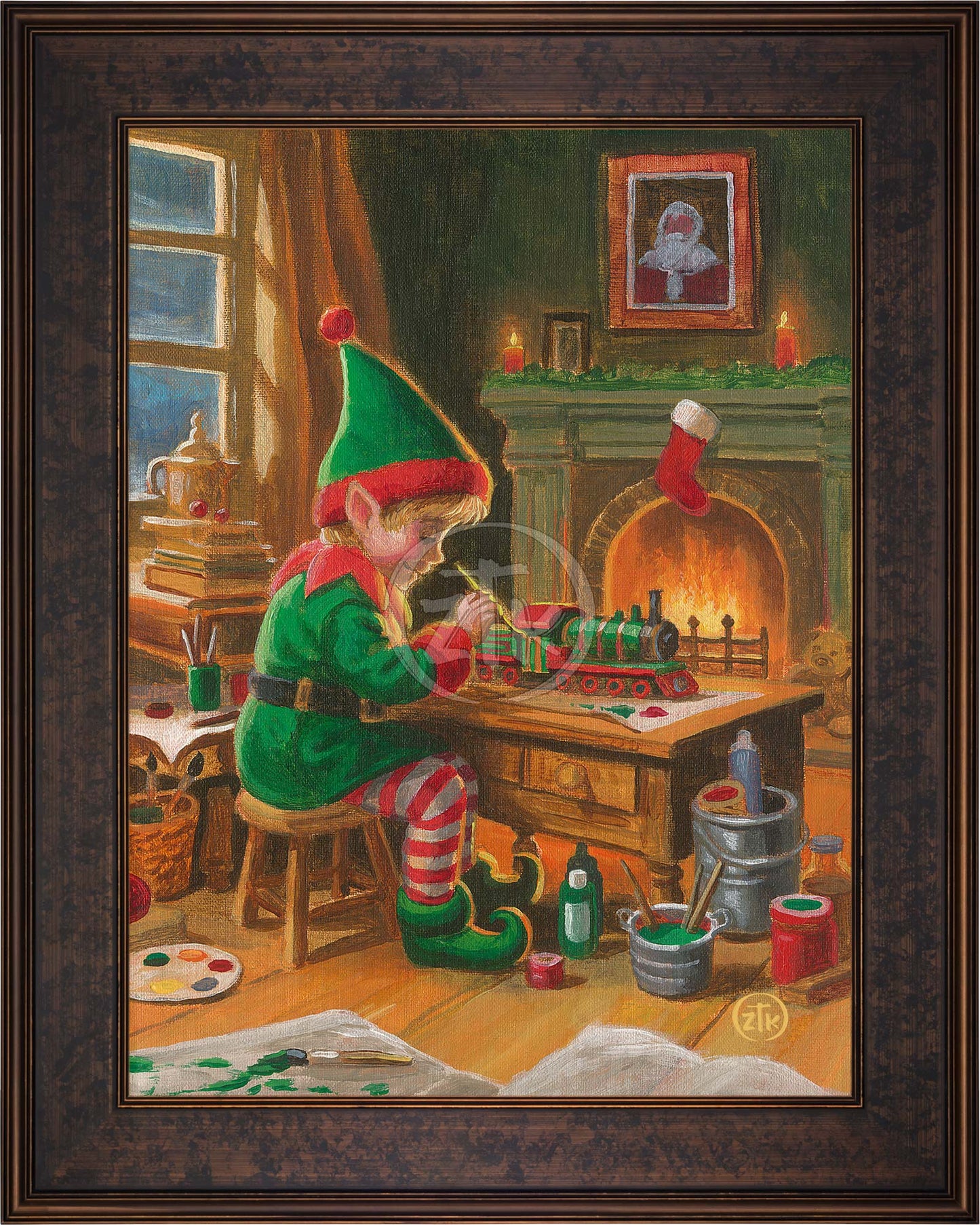 While the magic of Old Saint Nick fills the hearts of all those who love Christmas, he is not the only one responsible for our yule-tide holiday traditions. Indeed, he may deliver the toys to the millions of deserving children who are listed on his "nice" list but, it is the North Pole Elves that make the gifts in the amounts needed to fill the space under the tree. Santa's little helpers are there to launch Santa and his bountiful sack on his hurried flight to the houses of all believers. Put simply, he needs them to fulfill his Christmas Eve calling. I try to capture both the enchantment and practical effort of these magic helpers in my latest holiday painting, Santa’s Little Helper.