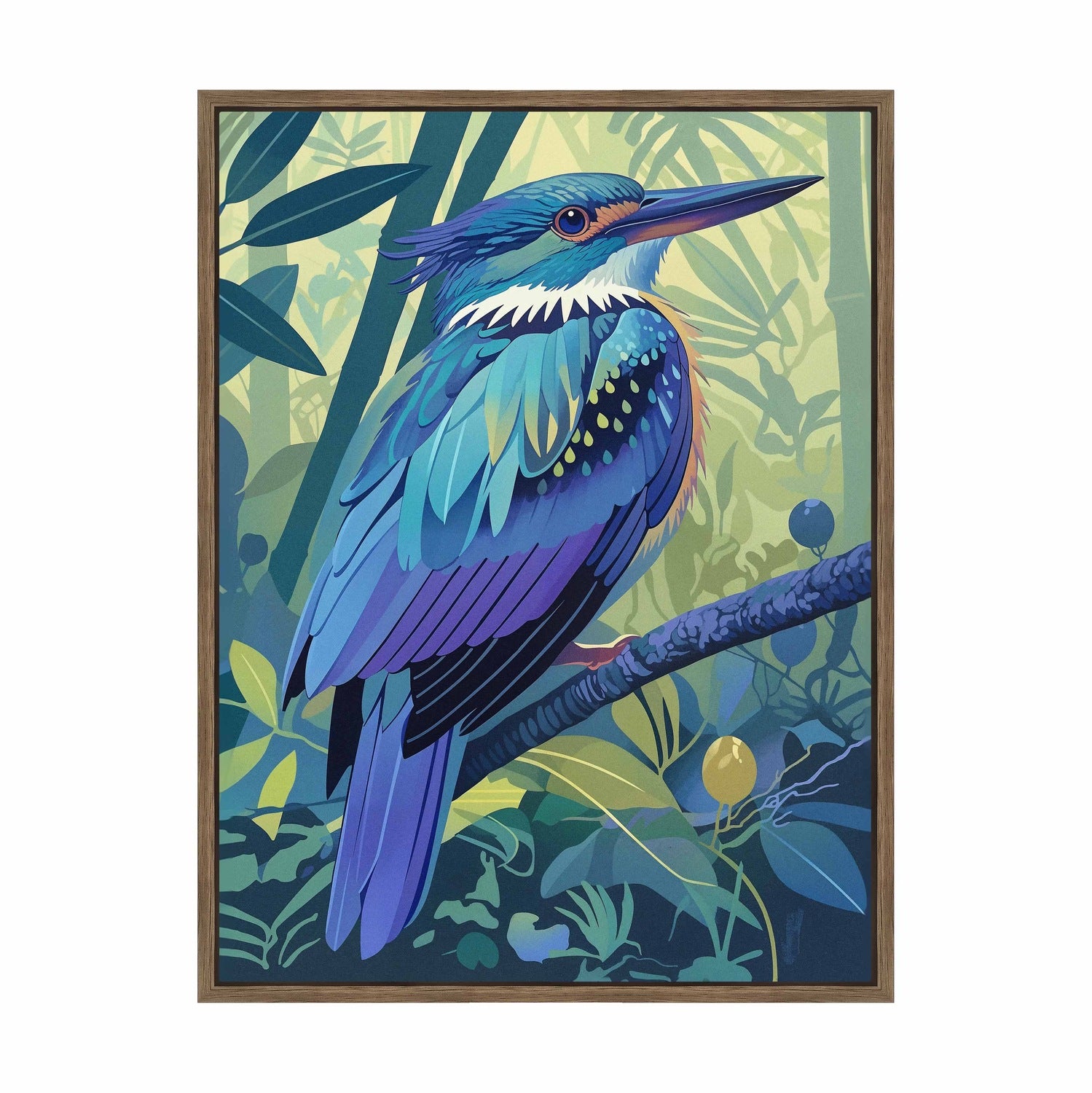 Tropical Splendor - Kingfisher in Lush Jungle is a vibrant and enchanting piece from the Limelight Collection, capturing the dynamic beauty and vivid colors that characterize this series. This painting features a stunning kingfisher perched on a branch, surrounded by the dense, lush foliage of a tropical jungle. The kingfisher's plumage, a brilliant mix of blues, greens, and hints of purple, is rendered with exquisite detail, highlighting the bird's striking appearance and poised elegance.