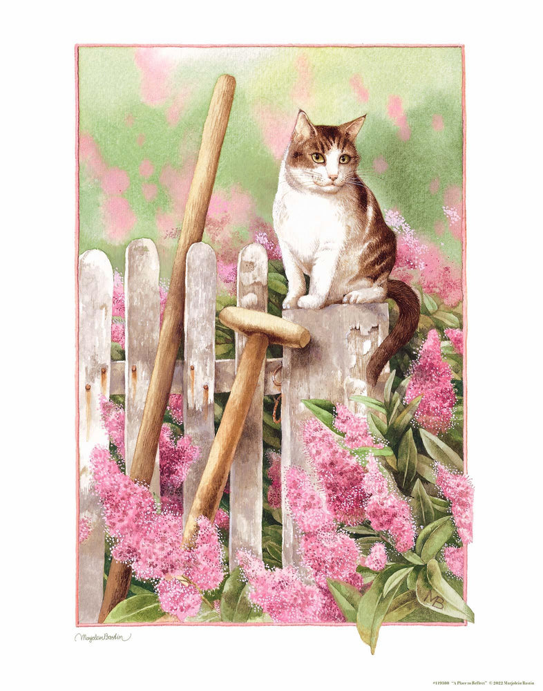 The spirea is a wonderful plant to attract even more life into your garden, butterflies love it! The calm and tranquillity that exudes from a quiet spot in the garden can be so soothing. The same seems true for my friend Mary Ann's cat Cameron, just quietly enjoying her spot in the garden. I just hope Cameron doesn""t see anything she wants to chase!