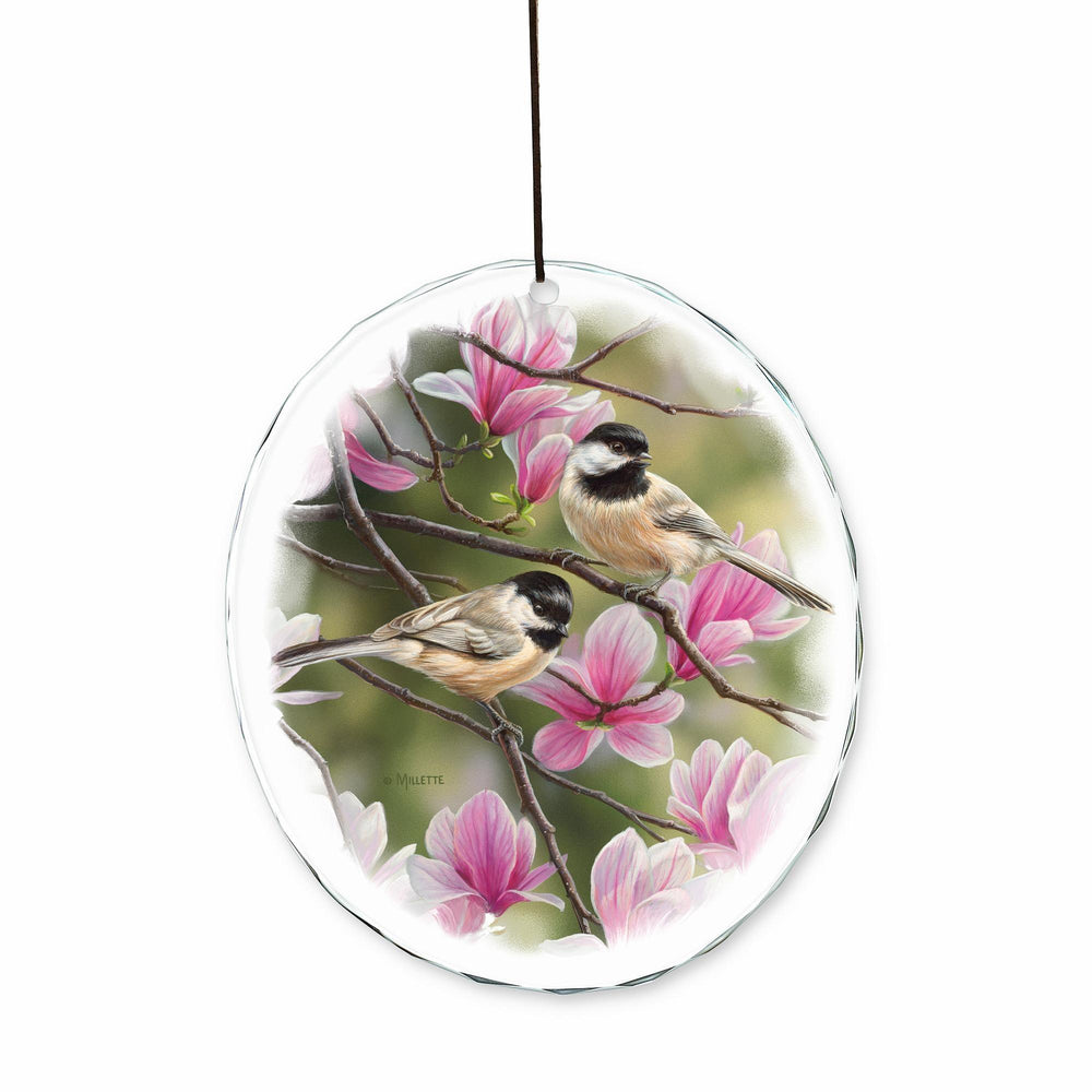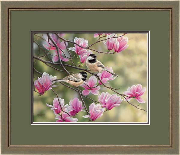 A sure sign of winter's end the magnolia puts on a dazzling floral display paired with my favorite bird, the chickadee.