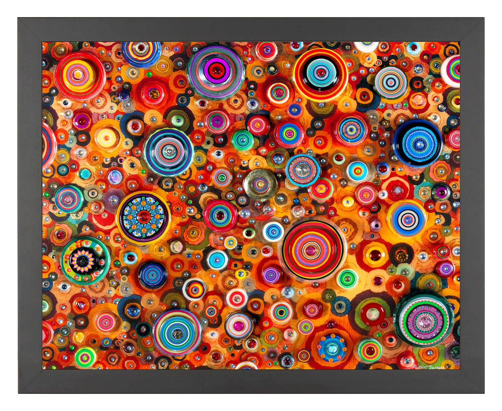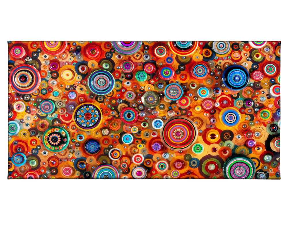 When it comes to creating collage art, I take a surreal approach. I believe in allowing the viewer to interpret my pieces without any guidance from me. My aim is to create works that draw the viewer in, encouraging them to discover something new each time they look at it. One of my pieces, Galactic Explosion, is my colorful depiction of "The Big Bang." By using round shapes, pearls, beads, and buttons, I strive to capture the essence of an orbital explosion in a captivating and colorful manner.